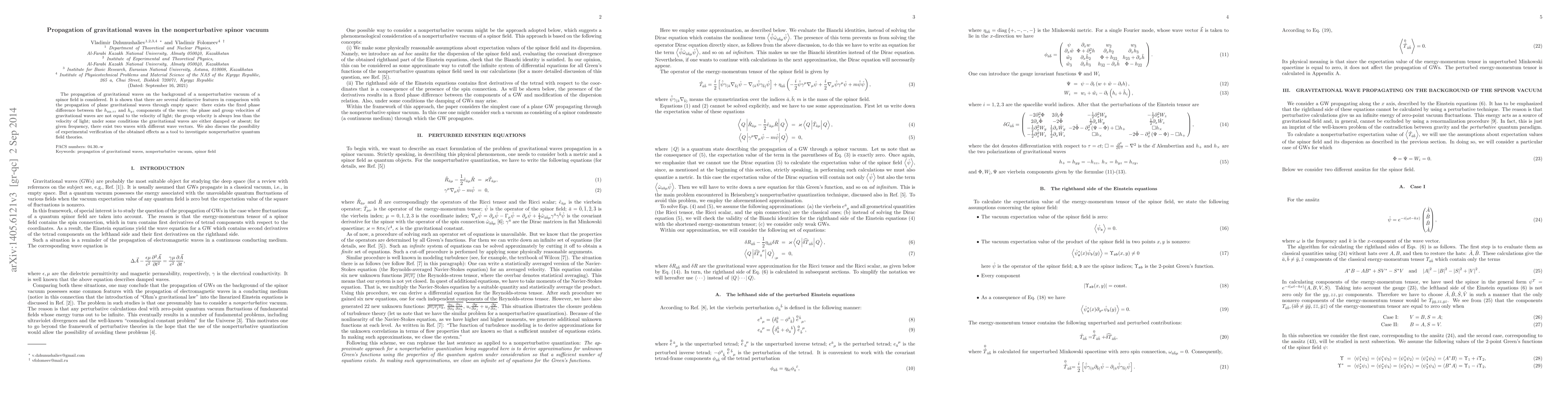 This paper explores the propagation of gravitational waves in a nonperturbative spinor field vacuum, revealing unique features such as fixed phase differences between wave components, differing phase and group velocities, and potential damping or absence of waves under certain conditions. The study also considers experimental methods to verify these effects for probing nonperturbative quantum field theories.