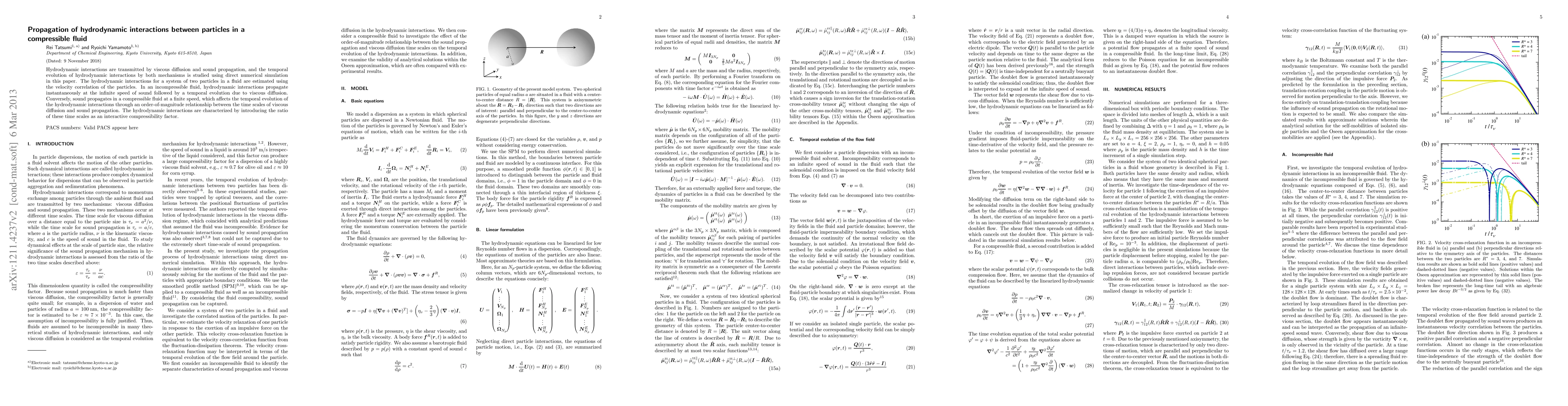 This research investigates the propagation of hydrodynamic interactions between particles in a compressible fluid using direct numerical simulations. It finds that unlike in incompressible fluids, where interactions propagate instantaneously, compressibility alters the temporal evolution due to the finite speed of sound, characterized by an interactive compressibility factor.