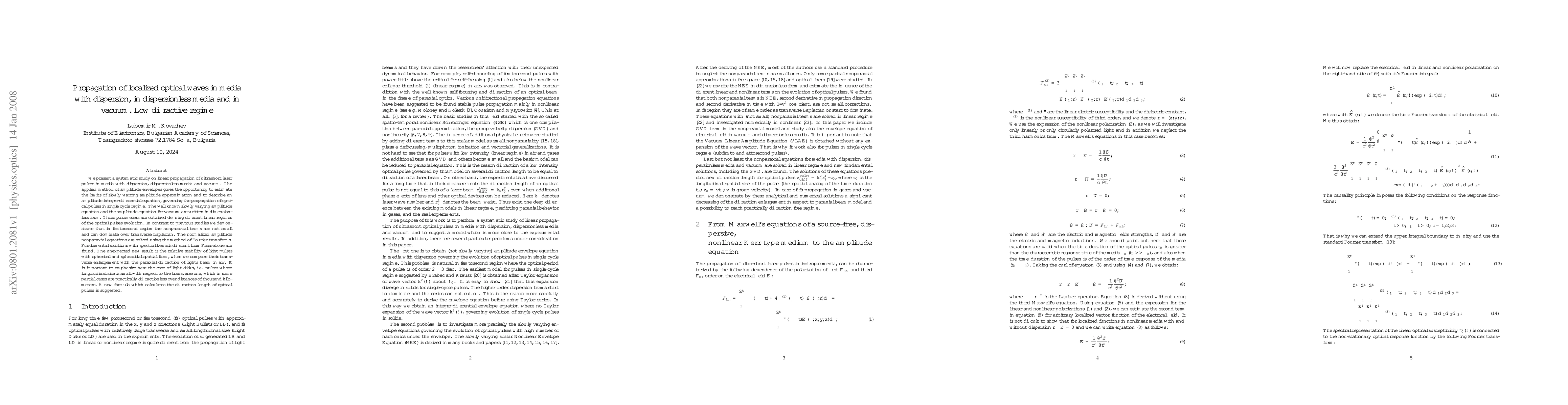 We present a systematic study on linear propagation of ultrashort laser pulses in media with dispersion, dispersionless media and vacuum. The applied method of amplitude envelopes gives the opportunity to estimate the limits of slowly warring amplitude approximation and to describe an amplitude integro-differential equation, governing the propagation of optical pulses in single cycle regime. The well known slowly varying amplitude equation and the amplitude equation for vacuum are written in dimensionless form. Three parameters are obtained defining different linear regimes of the optical pulses evolution. In contrast to previous studies we demonstrate that in femtosecond region the nonparaxial terms are not small and can dominate over transverse Laplacian. The normalized amplitude nonparaxial equations are solved using the method of Fourier transforms. Fundamental solutions with spectral kernels different from Fresnel one are found. One unexpected new result is the relative stability of light pulses with spherical and spheroidal spatial form, when we compare their transverse enlargement with the paraxial diffraction of lights beam in air. It is important to emphasize here the case of light disks, i.e. pulses whose longitudinal size is small with respect to the transverse one, which in some partial cases are practically diffractionless over distances of thousand kilometers. A new formula which calculates the diffraction length of optical pulses is suggested.