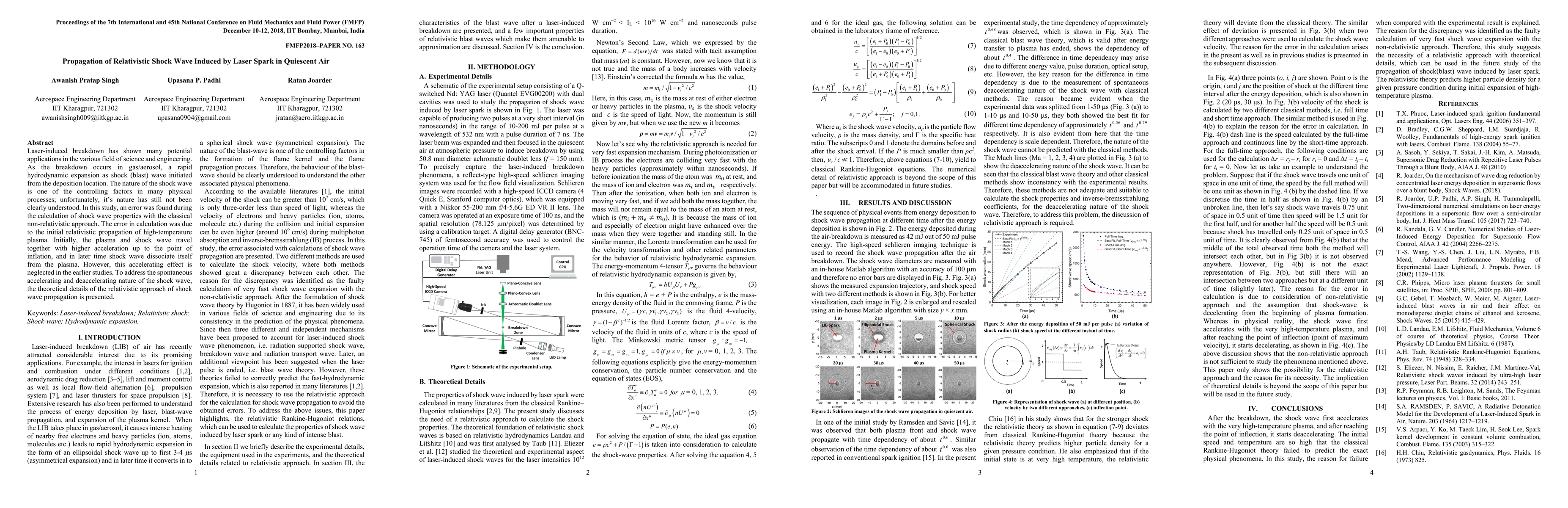 This study investigates the propagation of relativistic shock waves induced by laser sparks in quiescent air, correcting a previously found error in classical non-relativistic calculations. The new relativistic approach reveals the accelerating and deaccelerating nature of the shock wave, shedding light on its controlling factors in physical processes.