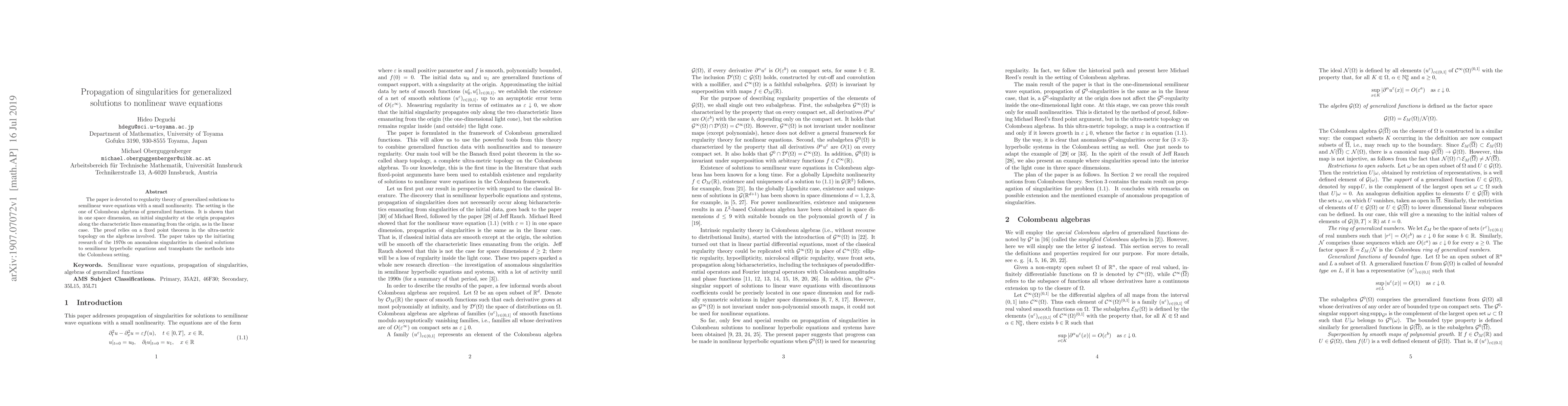 This paper explores the regularity theory for generalized solutions to semilinear wave equations, demonstrating that initial singularities propagate along characteristic lines in one space dimension using Colombeau algebra methods. The proof employs a fixed point theorem in ultra-metric topology, extending 1970s research on anomalous singularities.