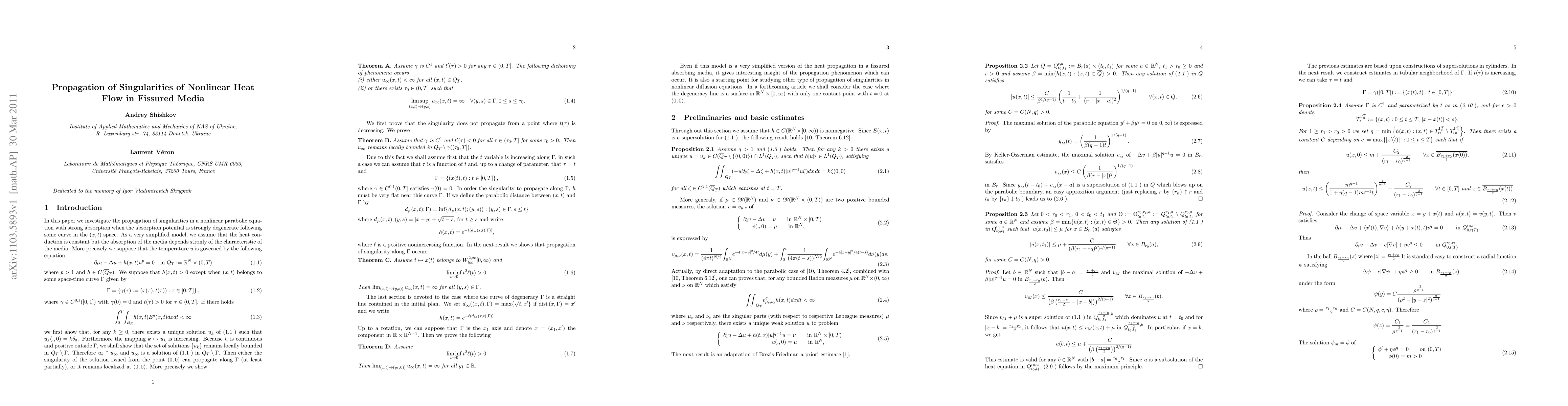 This paper investigates how singularities in a nonlinear heat flow equation with strong absorption propagate through fissured media, focusing on the role of degenerate absorption curves.