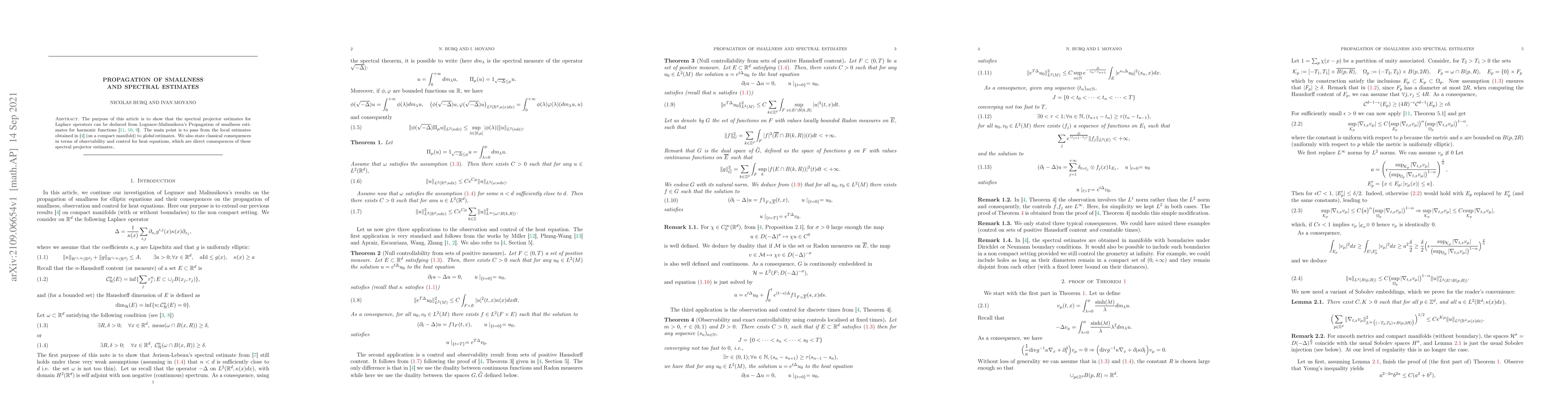 This paper shows how to derive spectral projector estimates for Laplace operators from global Propagation of smallness estimates for harmonic functions, with implications for heat equation observability and control.