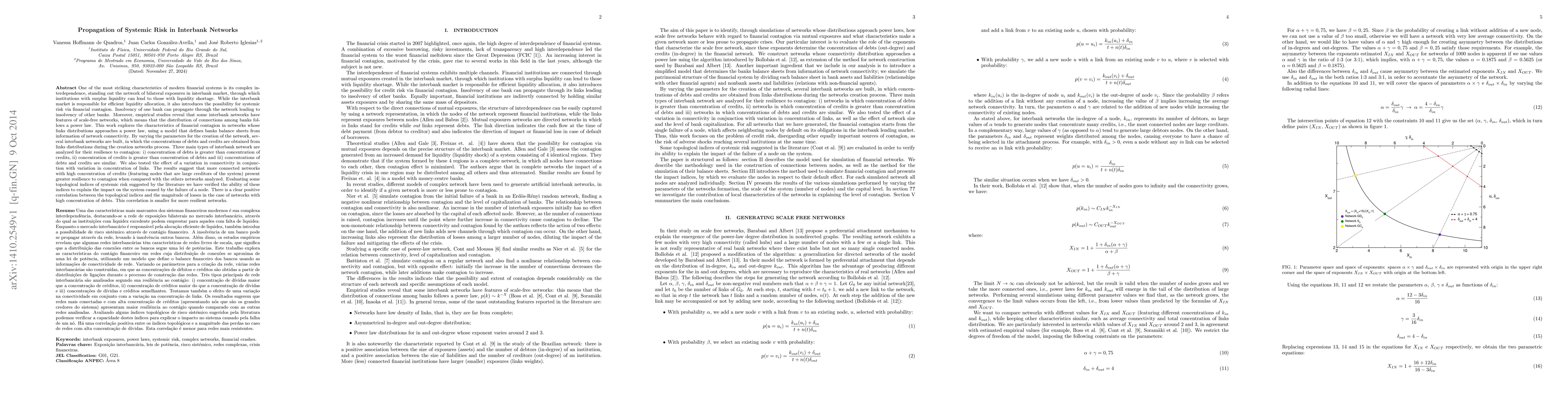 This work explores the characteristics of financial contagion in networks whose links distributions approaches a power law, using a model that defines banks balance sheets from information of network connectivity. By varying the parameters for the creation of the network, several interbank networks are built, in which the concentrations of debts and credits are obtained from links distributions during the creation networks process. Three main types of interbank network are analyzed for their resilience to contagion: i) concentration of debts is greater than concentration of credits, ii) concentration of credits is greater than concentration of debts and iii) concentrations of debts and credits are similar. We also tested the effect of a variation in connectivity in conjunction with variation in concentration of links. The results suggest that more connected networks with high concentration of credits (featuring nodes that are large creditors of the system) present greater resilience to contagion when compared with the others networks analyzed. Evaluating some topological indices of systemic risk suggested by the literature we have verified the ability of these indices to explain the impact on the system caused by the failure of a node. There is a clear positive correlation between the topological indices and the magnitude of losses in the case of networks with high concentration of debts. This correlation is smaller for more resilient networks.