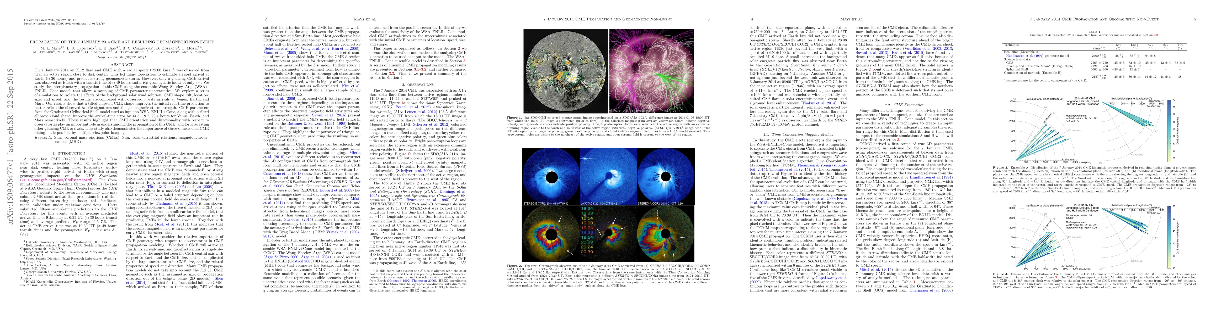 On 7 January 2014 an X1.2 flare and CME with a radial speed $\approx$2500 km s$^{-1}$ was observed from near an active region close to disk center. This led many forecasters to estimate a rapid arrival at Earth ($\approx$36 hours) and predict a strong geomagnetic storm. However, only a glancing CME arrival was observed at Earth with a transit time of $\approx$49 hours and a $K_{\rm P}$ geomagnetic index of only $3-$. We study the interplanetary propagation of this CME using the ensemble Wang-Sheeley-Arge (WSA)-ENLIL+Cone model, that allows a sampling of CME parameter uncertainties. We explore a series of simulations to isolate the effects of the background solar wind solution, CME shape, tilt, location, size, and speed, and the results are compared with observed in-situ arrivals at Venus, Earth, and Mars. Our results show that a tilted ellipsoid CME shape improves the initial real-time prediction to better reflect the observed in-situ signatures and the geomagnetic storm strength. CME parameters from the Graduated Cylindrical Shell model used as input to WSA--ENLIL+Cone, along with a tilted ellipsoid cloud shape, improve the arrival-time error by 14.5, 18.7, 23.4 hours for Venus, Earth, and Mars respectively. These results highlight that CME orientation and directionality with respect to observatories play an important role in understanding the propagation of this CME, and for forecasting other glancing CME arrivals. This study also demonstrates the importance of three-dimensional CME fitting made possible by multiple viewpoint imaging.