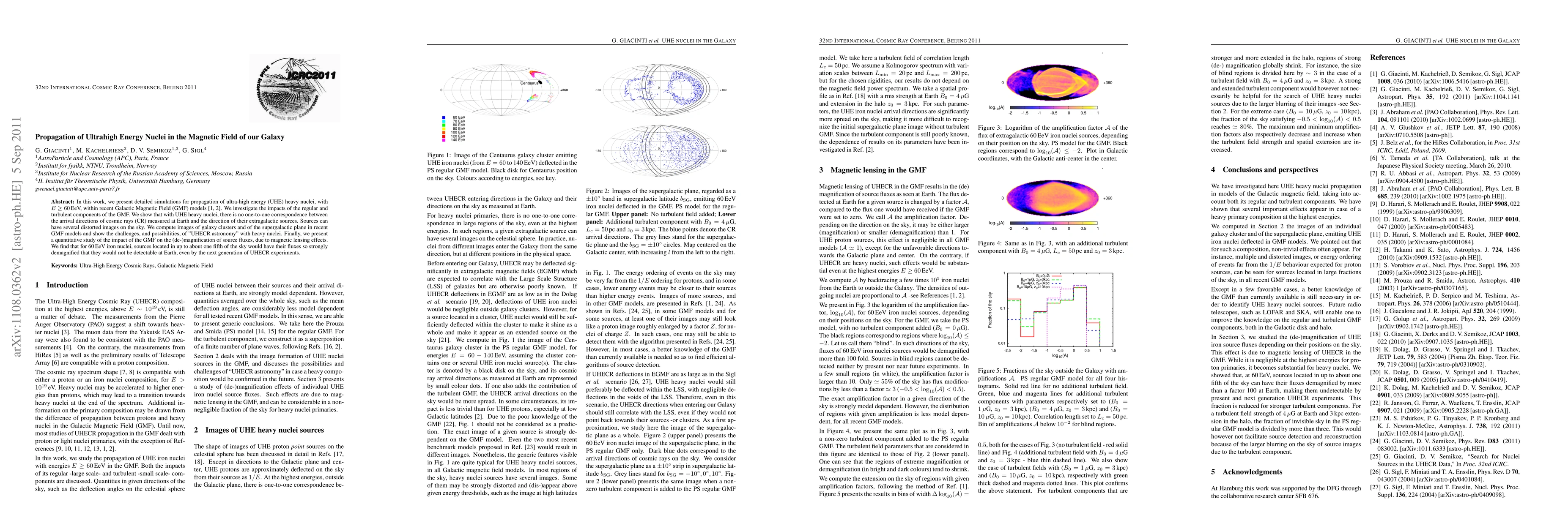 In this work, we present detailed simulations for propagation of ultra-high energy (UHE) heavy nuclei, with E > 60 EeV, within recent Galactic Magnetic Field (GMF) models. We investigate the impacts of the regular and turbulent components of the GMF. We show that with UHE heavy nuclei, there is no one-to-one correspondence between the arrival directions of cosmic rays (CR) measured at Earth and the direction of their extragalactic sources. Sources can have several distorted images on the sky. We compute images of galaxy clusters and of the supergalactic plane in recent GMF models and show the challenges, and possibilities, of "UHECR astronomy" with heavy nuclei. Finally, we present a quantitative study of the impact of the GMF on the (de-)magnification of source fluxes, due to magnetic lensing effects. We find that for 60 EeV iron nuclei, sources located in up to about one fifth of the sky would have their fluxes so strongly demagnified that they would not be detectable at Earth, even by the next generation of UHECR experiments.