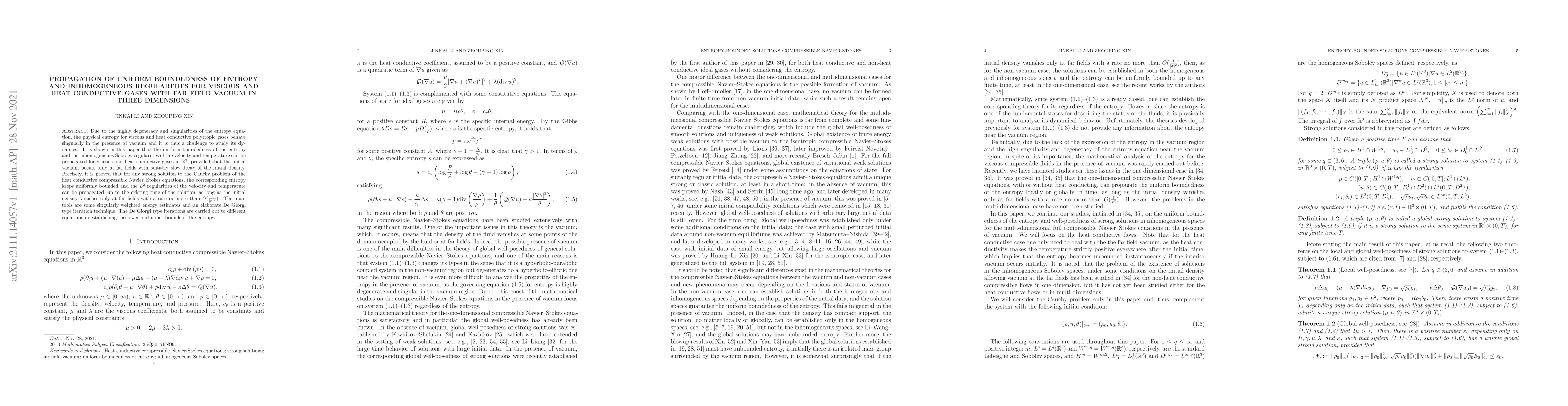 This paper demonstrates the uniform boundedness of entropy and inhomogeneous Sobolev regularities for viscous and heat conductive gases in three dimensions, even when vacuum conditions are present at far fields. The study employs weighted energy estimates and De Giorgi type iteration techniques to establish these results.