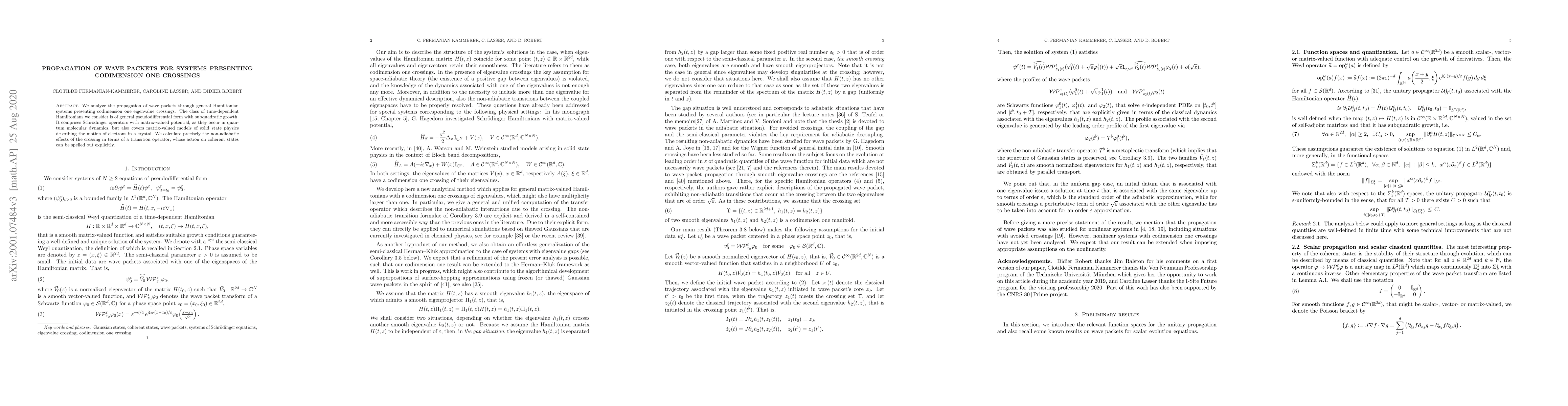 Clotilde Fermanian Kammerer, Caroline Lasser, Didier Robert