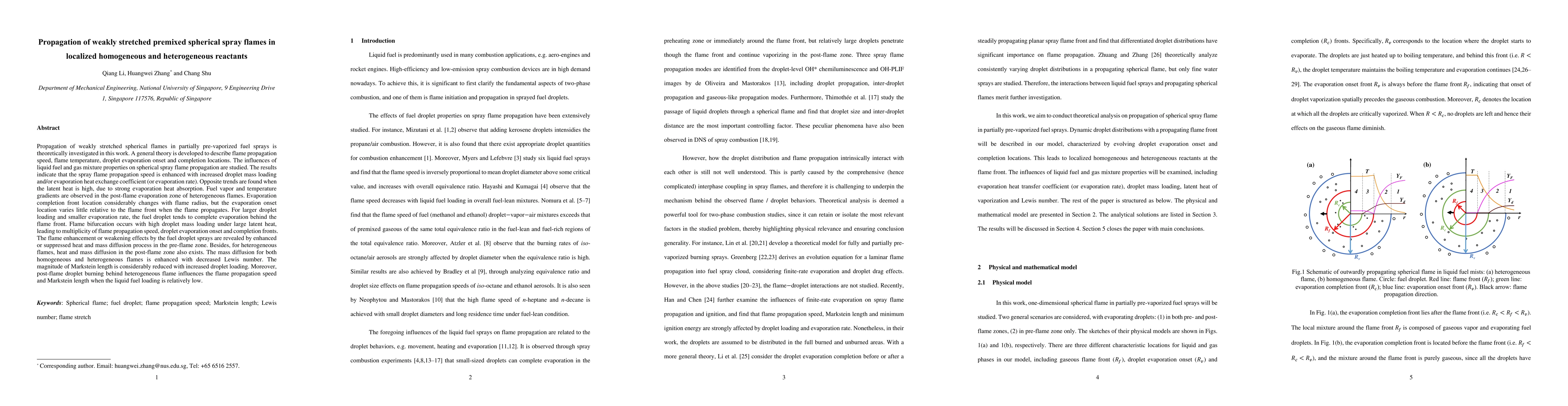 Researchers studied how droplets in fuel sprays affect flame propagation speed and behavior, finding that higher droplet loading can enhance or weaken flames depending on the properties of the fuel and gas mixture.