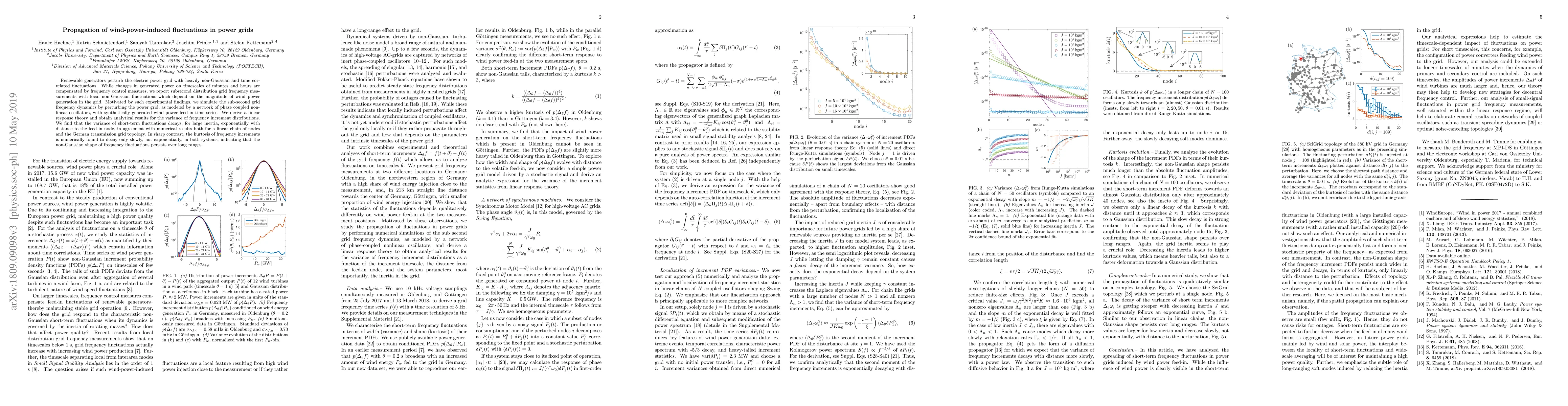 This paper investigates how wind power generation induces non-Gaussian fluctuations in power grids, finding that while variance decays exponentially with distance, the non-Gaussian characteristics of these fluctuations persist over long distances. Analytical and numerical models confirm these dynamics in both simplified and real grid networks.