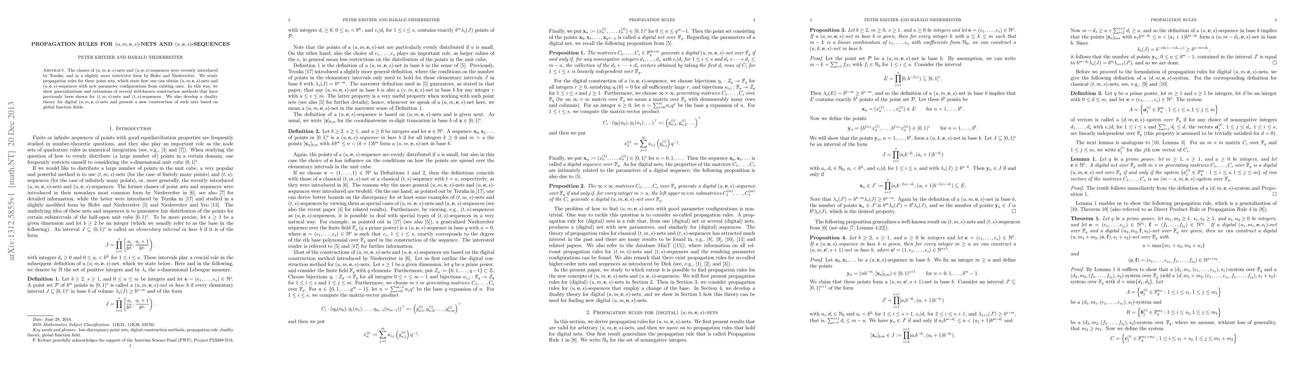 This paper explores propagation rules for $(u,m,{\bf e},s)$-nets and $(u,{\bf e},s)$-sequences, extending known construction methods and introducing a new construction based on global function fields, alongside a developed duality theory.