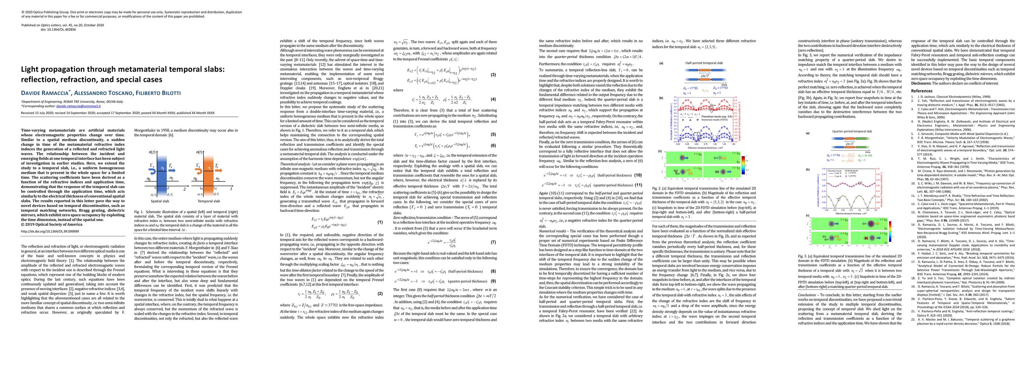 This paper explores the transmission and reflection of electromagnetic waves through time-varying metamaterial temporal slabs, deriving coefficients that depend on refractive indices and application time. The study suggests that temporal slab response can be manipulated by its duration, potentially leading to new devices exploiting temporal discontinuities.