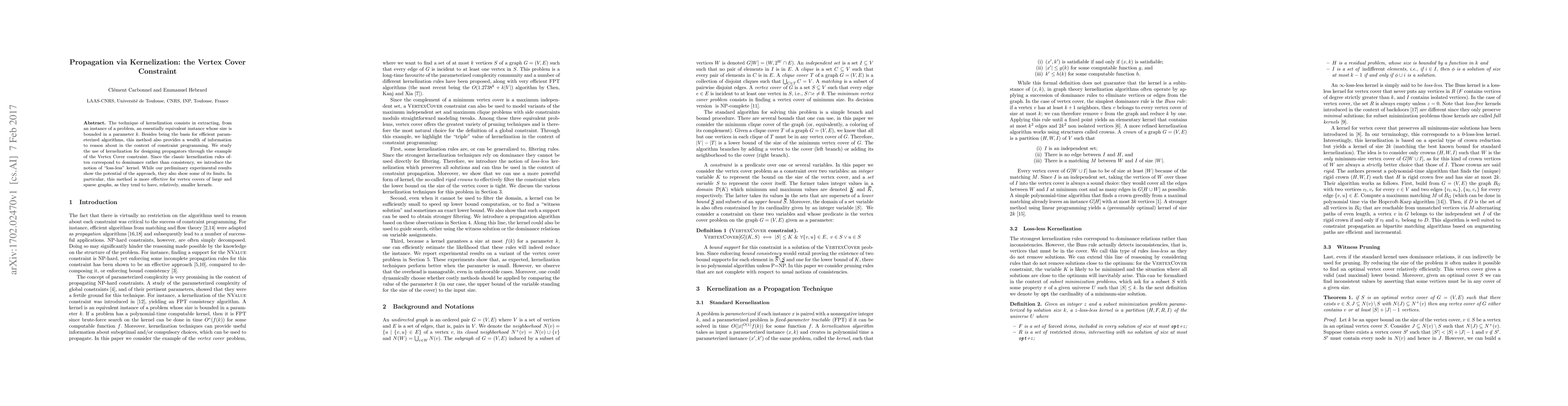This paper explores kernelization for designing propagators in constraint programming, specifically for the Vertex Cover constraint. It introduces a "loss-less" kernel approach, which, while promising for large and sparse graphs, shows limitations in other contexts.