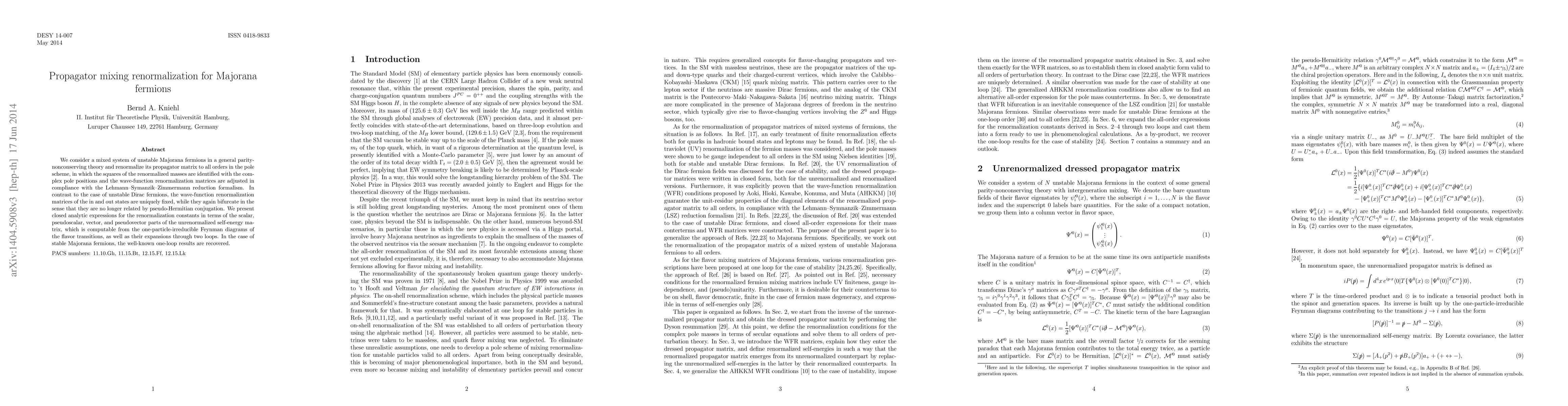 We consider a mixed system of unstable Majorana fermions in a general parity-nonconserving theory and renormalize its propagator matrix to all orders in the pole scheme, in which the squares of the renormalized masses are identified with the complex pole positions and the wave-function renormalization (WFR) matrices are adjusted in compliance with the Lehmann-Symanzik-Zimmermann reduction formalism. In contrast to the case of unstable Dirac fermions, the WFR matrices of the in and out states are uniquely fixed, while they again bifurcate in the sense that they are no longer related by pseudo-Hermitian conjugation. We present closed analytic expressions for the renormalization constants in terms of the scalar, pseudoscalar, vector, and pseudovector parts of the unrenormalized self-energy matrix, which is computable from the one-particle-irreducible Feynman diagrams of the flavor transitions, as well as their expansions through two loops. In the case of stable Majorana fermions, the well-known one-loop results are recovered.