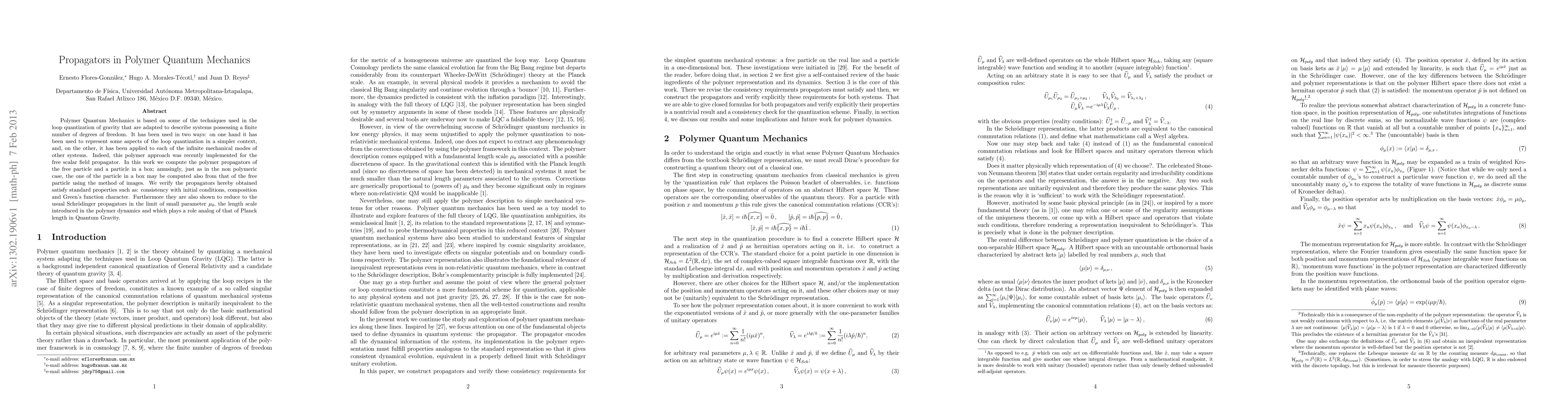 This paper computes polymer propagators for the free particle and a particle in a box, demonstrating their consistency with initial conditions and standard properties, and showing they revert to conventional Schrödinger propagators in the small parameter limit.