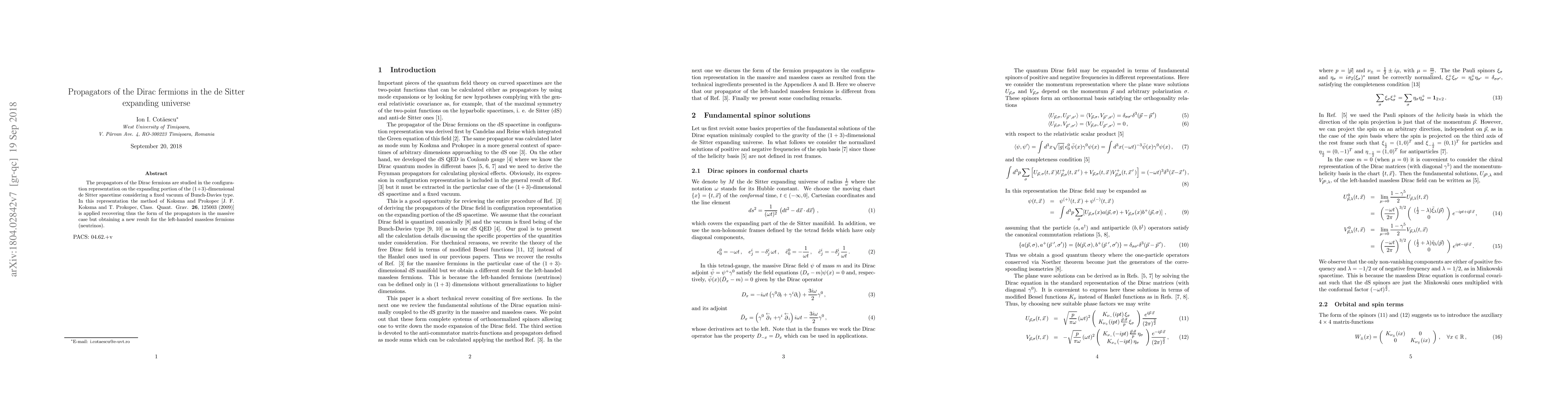 This paper investigates the propagators of Dirac fermions in the expanding de Sitter spacetime using the configuration representation and the method of Koksma and Prokopec. It recovers the massive case propagators and presents a novel result for the left-handed massless fermions, specifically neutrinos.
