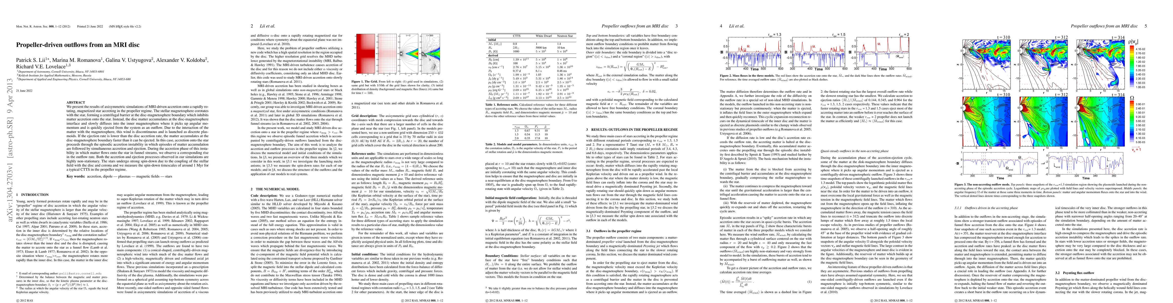 We present the results of axisymmetric simulations of MRI-driven accretion onto a rapidly rotating, magnetized star accreting in the propeller regime. The stellar magnetosphere corotates with the star, forming a centrifugal barrier at the disc-magnetosphere boundary which inhibits matter accretion onto the star. Instead, the disc matter accumulates at the disc-magnetosphere interface and slowly diffuses into the inner magnetosphere where it picks up angular momentum and is quickly ejected from the system as an outflow. Due to the interaction of the matter with the magnetosphere, this wind is discontinuous and is launched as discrete plasmoids. If the ejection rate is lower than the disc accretion rate, the matter accumulates at the disc-magnetosphere boundary faster than it can be ejected. In this case, accretion onto the star proceeds through the episodic accretion instability in which episodes of matter accumulation are followed by simultaneous accretion and ejection. During the accretion phase of this instability in which matter flows onto the star in funnel streams, we observe a corresponding rise in the outflow rate. Both the accretion and ejection processes observed in our simulations are highly non-stationary. The stars undergo strong spin-down due to the coupling of the stellar field with the disc and corona and we measure the spin-down timescales of around 1 Myr for a typical CTTS in the propeller regime.