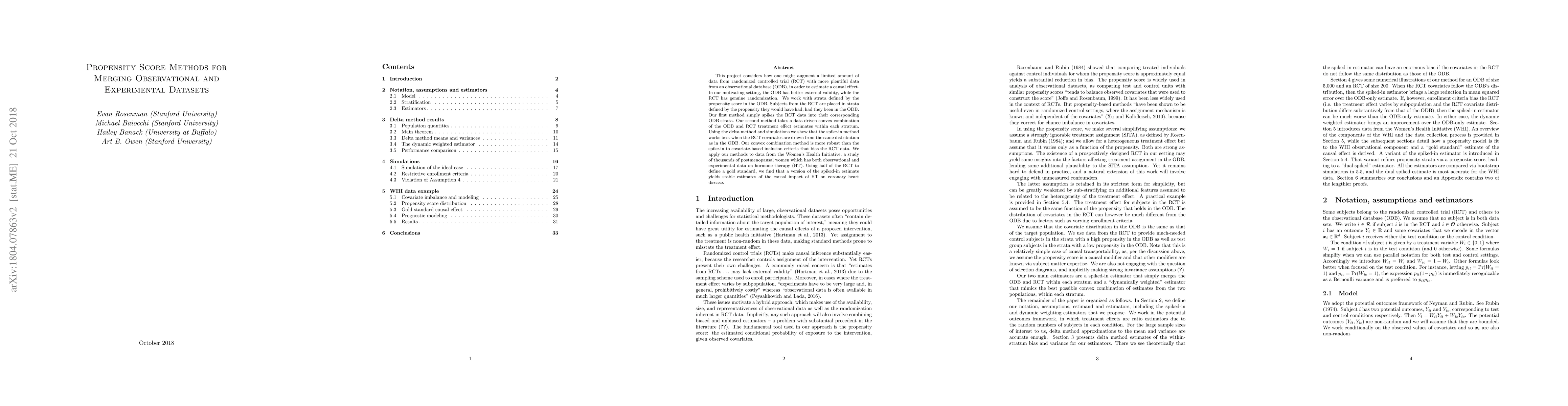 This project considers how one might augment a limited amount of data from randomized controlled trial (RCT) with more plentiful data from an observational database (ODB), in order to estimate a causal effect. In our motivating setting, the ODB has better external validity, while the RCT has genuine randomization. We work with strata defined by the propensity score in the ODB. Subjects from the RCT are placed in strata defined by the propensity they would have had, had they been in the ODB. Our first method simply spikes the RCT data into their corresponding ODB strata. Our second method takes a data-driven convex combination of the ODB and RCT treatment effect estimates within each stratum. Using the delta method and simulations we show that the spike-in method works best when the RCT covariates are drawn from the same distribution as in the ODB. Our convex combination method is more robust than the spike-in to covariate-based inclusion criteria that bias the RCT data. We apply our methods to data from the Women's Health Initiative, a study of thousands of postmenopausal women which has both observational and experimental data on hormone therapy (HT). Using half of the RCT to define a gold standard, we find that a version of the spiked-in estimate yields stable estimates of the causal impact of HT on coronary heart disease.
