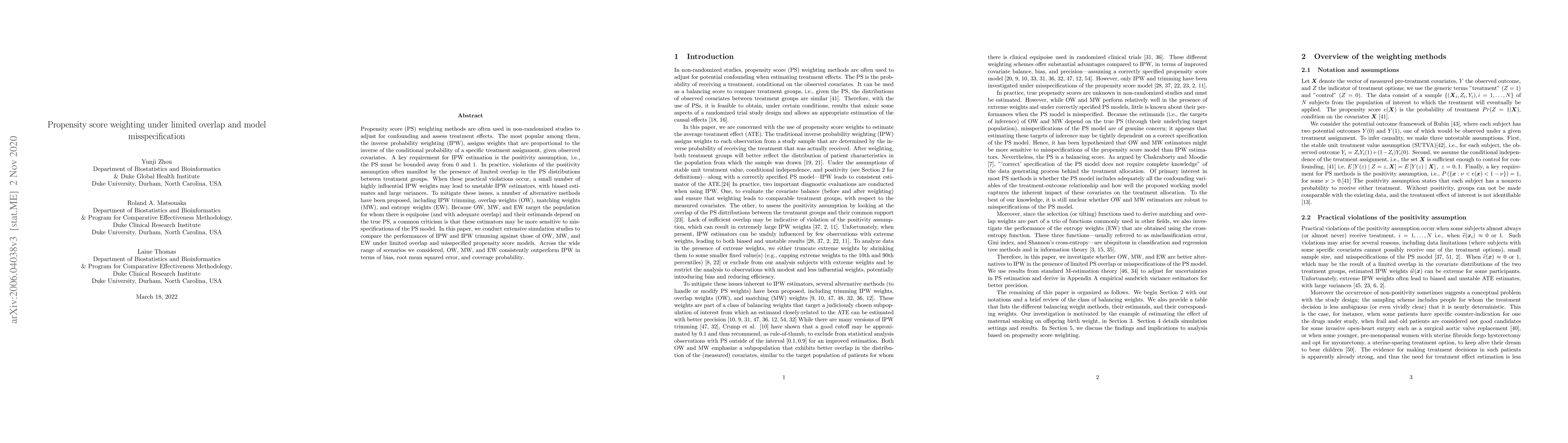 Propensity score (PS) weighting methods are often used in non-randomized studies to adjust for confounding and assess treatment effects. The most popular among them, the inverse probability weighting (IPW), assigns weights that are proportional to the inverse of the conditional probability of a specific treatment assignment, given observed covariates. A key requirement for IPW estimation is the positivity assumption, i.e., the PS must be bounded away from 0 and 1. In practice, violations of the positivity assumption often manifest by the presence of limited overlap in the PS distributions between treatment groups. When these practical violations occur, a small number of highly influential IPW weights may lead to unstable IPW estimators, with biased estimates and large variances. To mitigate these issues, a number of alternative methods have been proposed, including IPW trimming, overlap weights (OW), matching weights (MW), and entropy weights (EW). Because OW, MW, and EW target the population for whom there is equipoise (and with adequate overlap) and their estimands depend on the true PS, a common criticism is that these estimators may be more sensitive to misspecifications of the PS model. In this paper, we conduct extensive simulation studies to compare the performances of IPW and IPW trimming against those of OW, MW, and EW under limited overlap and misspecified propensity score models. Across the wide range of scenarios we considered, OW, MW, and EW consistently outperform IPW in terms of bias, root mean squared error, and coverage probability.