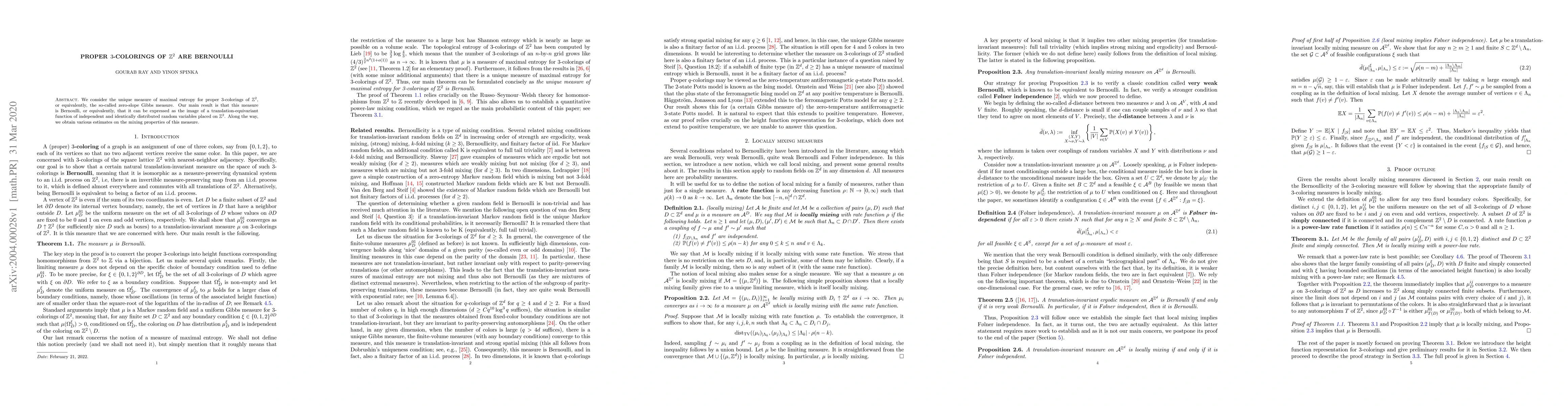 A new study finds that proper 3-colorings of the 2D grid have a unique measure of maximal entropy, which is Bernoulli - meaning it can be explained by independent random variables.