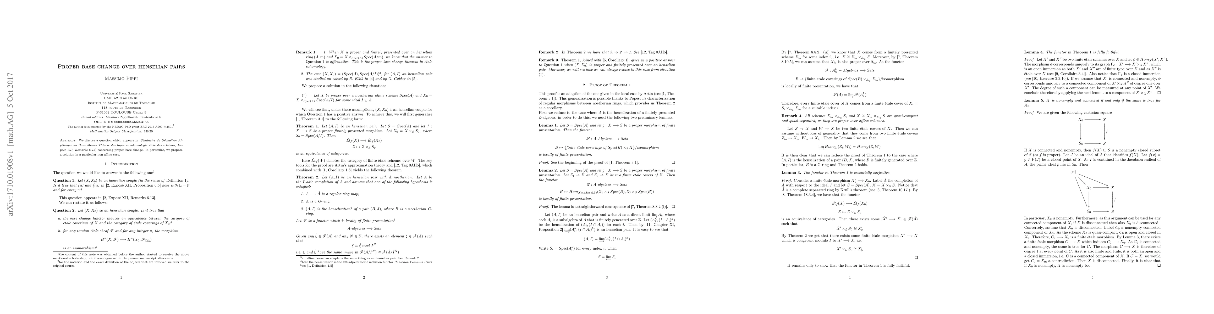 We discuss a question which appears in [S\'eminaire de G\'eom\'etrie Alg\'ebrique du Bous Marie- Th\'eorie des topos et cohomologie \'etale des sch\'emas, Expos\'e XII, Remarks 6.13] concerning proper base change. In particular, we propose a solution in a particular non-affine case.