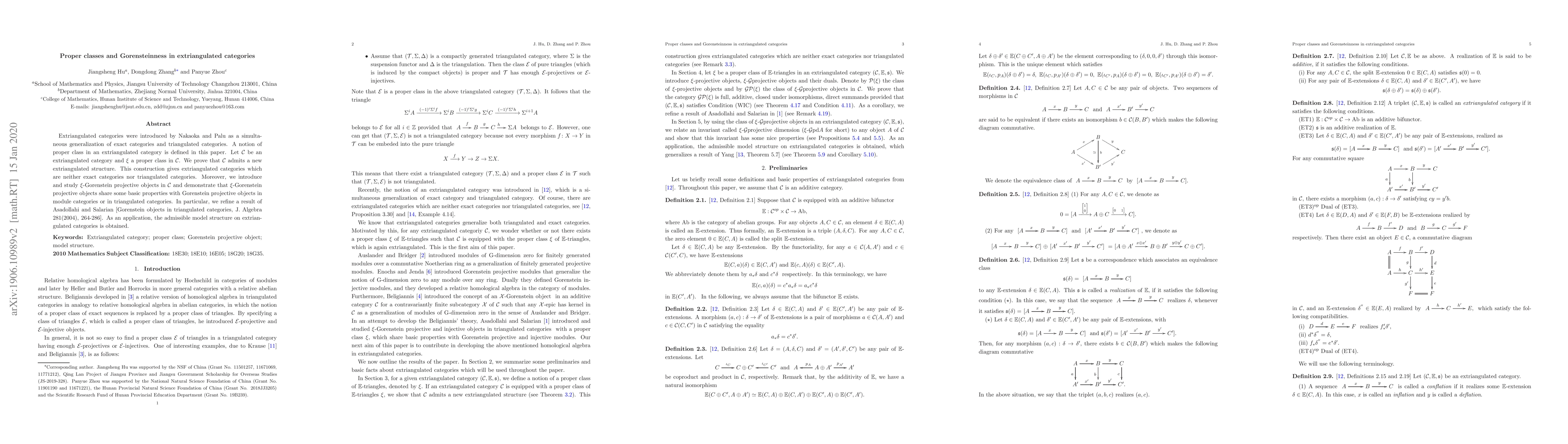 This paper introduces proper classes in extriangulated categories and constructs new extriangulated structures, demonstrating that these categories can be neither exact nor triangulated. It further explores $\xi$-Gorenstein projective objects, showing their properties parallel those in module or triangulated categories, and applies these findings to obtain $\xi$-$\mathcal{G}$ projective model structures.