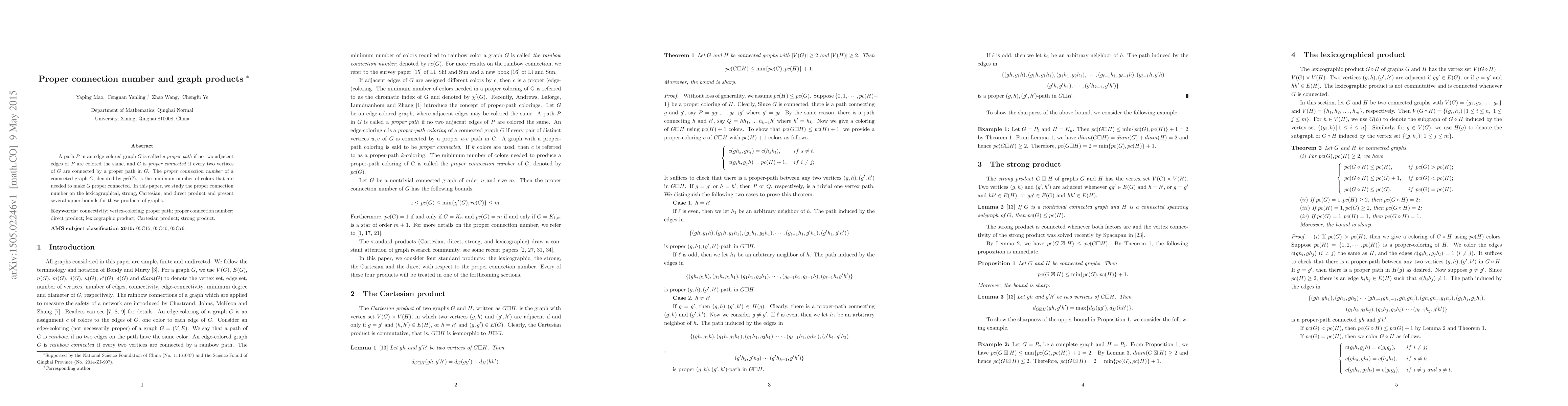 A path $P$ in an edge-colored graph $G$ is called \emph{a proper path} if no two adjacent edges of $P$ are colored the same, and $G$ is \emph{proper connected} if every two vertices of $G$ are connected by a proper path in $G$. The \emph{proper connection number} of a connected graph $G$, denoted by $pc(G)$, is the minimum number of colors that are needed to make $G$ proper connected. In this paper, we study the proper connection number on the lexicographical, strong, Cartesian, and direct product and present several upper bounds for these products of graphs.