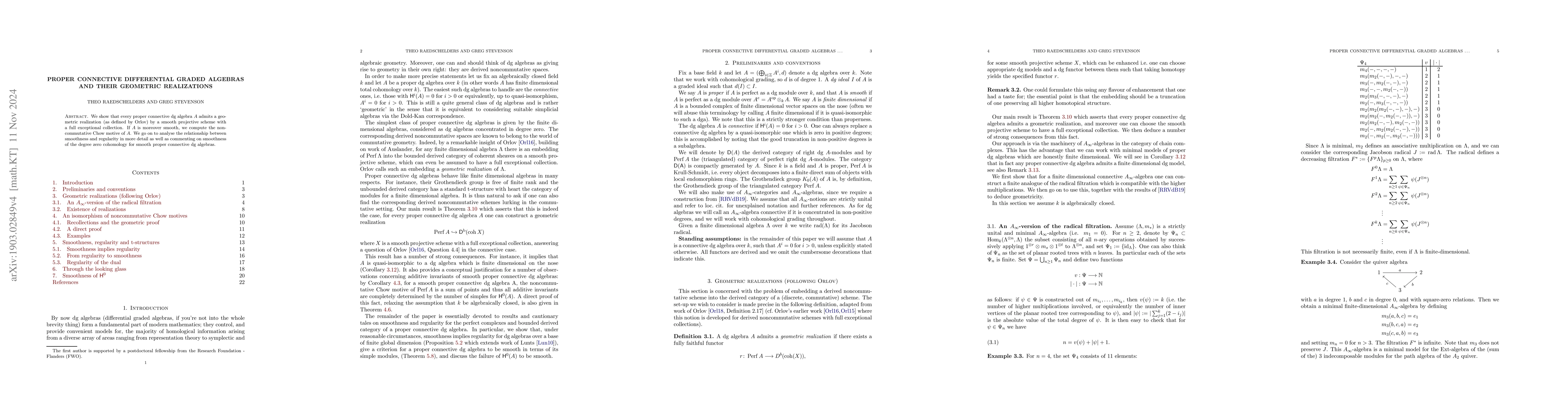 Researchers prove that every proper connective DG-algebra has a geometric realization as a smooth projective scheme with full exceptional collection, leading to new insights into quasi-isomorphism to finite-dimensional algebras and the noncommutative Chow motive.