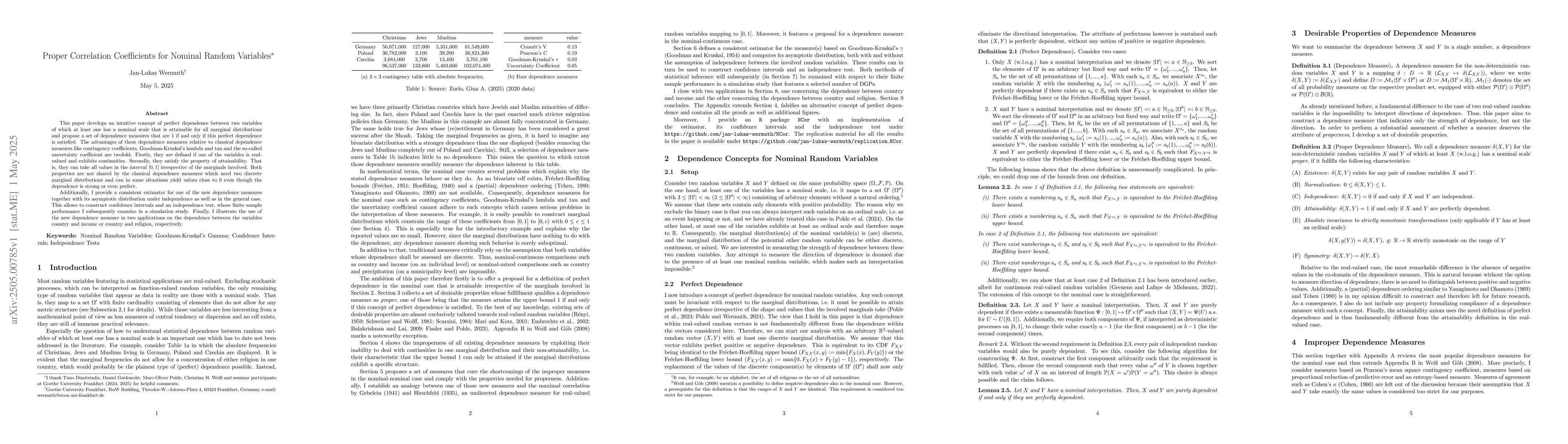 This paper introduces new dependence measures for nominal random variables, offering advantages over classical measures in terms of applicability and attainability, as well as providing a consistent estimator and simulation results.