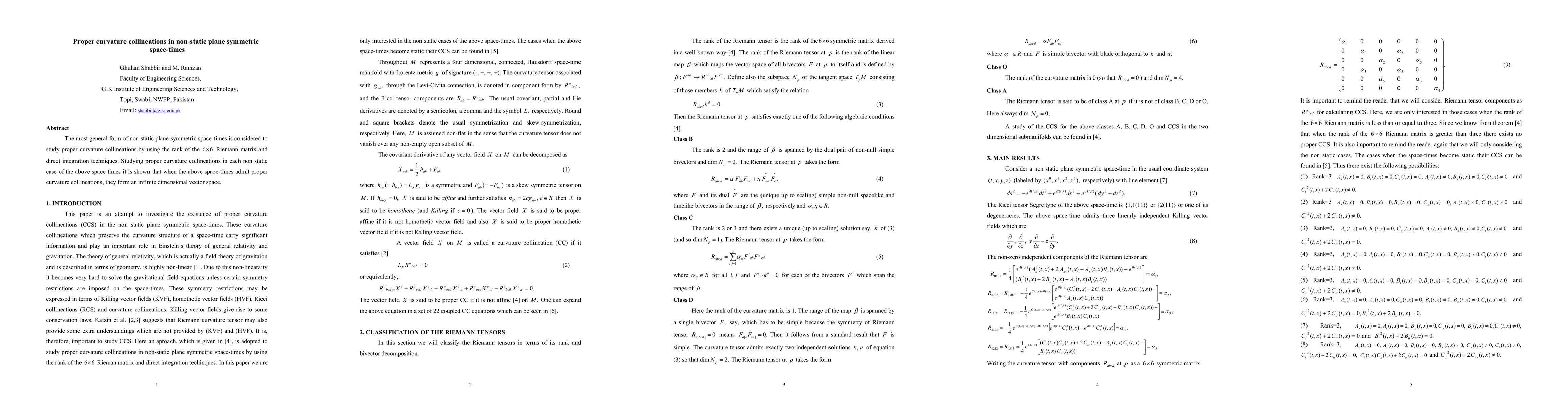 This paper investigates non-static plane symmetric space-times, focusing on proper curvature collineations using the Riemann matrix and integration techniques. It finds that when such space-times admit proper curvature collineations, they constitute an infinite-dimensional vector space.