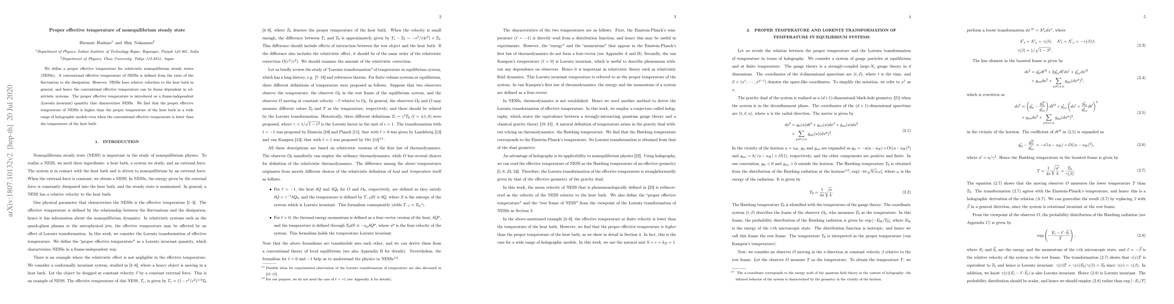 This paper introduces a frame-independent "proper effective temperature" for relativistic nonequilibrium steady states (NESSs) to address the frame dependence of conventional effective temperature definitions. It shows that this proper effective temperature is consistently higher than the heat bath's proper temperature across various holographic models.
