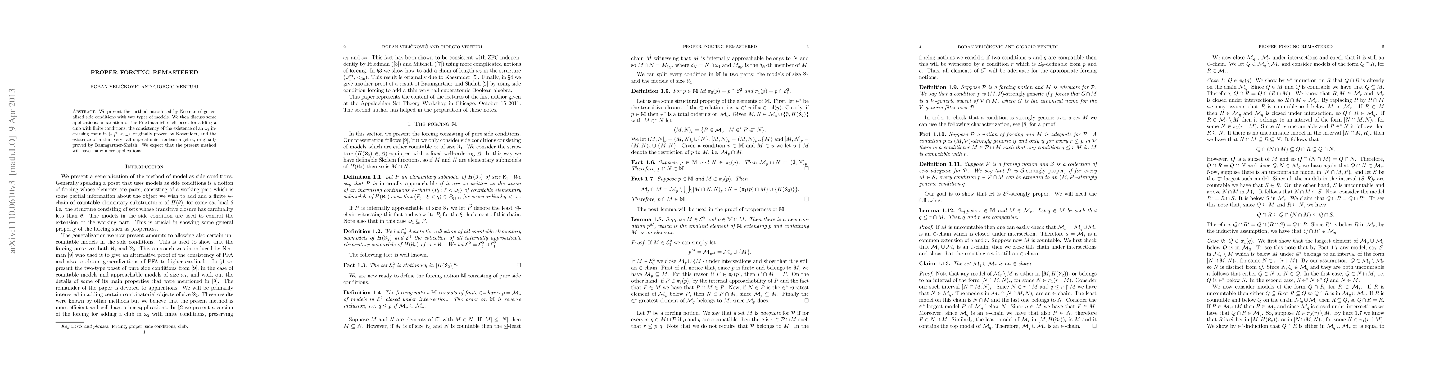 In these notes we present the method introduced by Neeman of generalized side conditions with two types of models. We then discuss some applications: the Friedman-Mitchell poset for adding a club in \omega_2 with finite conditions, Koszmider's forcing construction of a strong chain of length \omega_2 of functions from \omega_1 to \omega_1, and the Baumgartner-Shelah forcing construction of a thin very tall superatomic Boolean algebra.