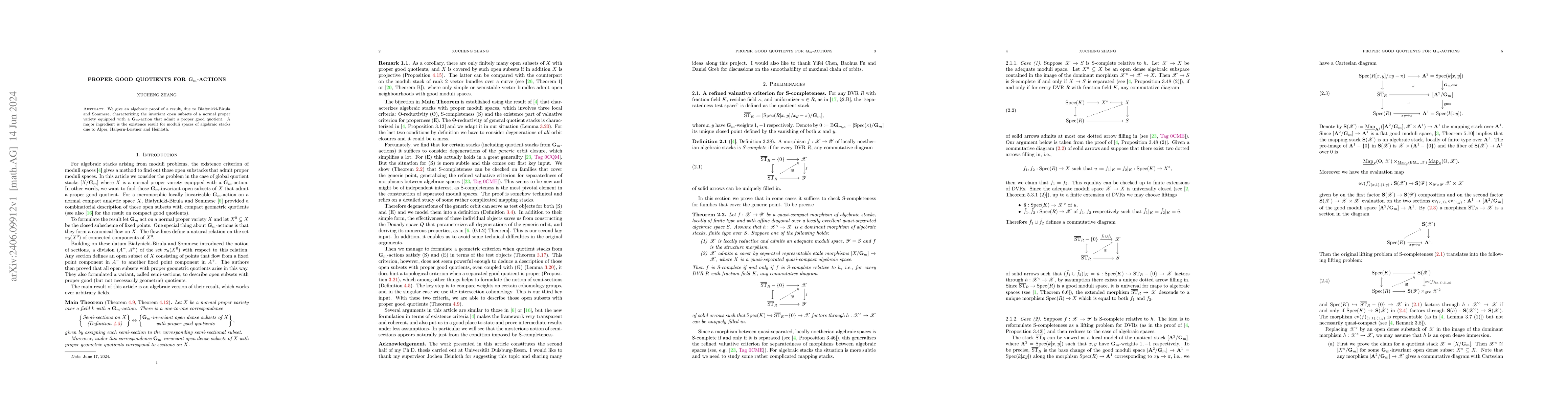We give an algebraic proof of a result, due to Bialynicki-Birula and Sommese, characterizing the invariant open subsets of a normal proper variety equipped with a $\mathbf{G}_m$-action that admit a proper good quotient. A major ingredient is the existence result for moduli spaces of algebraic stacks due to Alper, Halpern-Leistner and Heinloth.