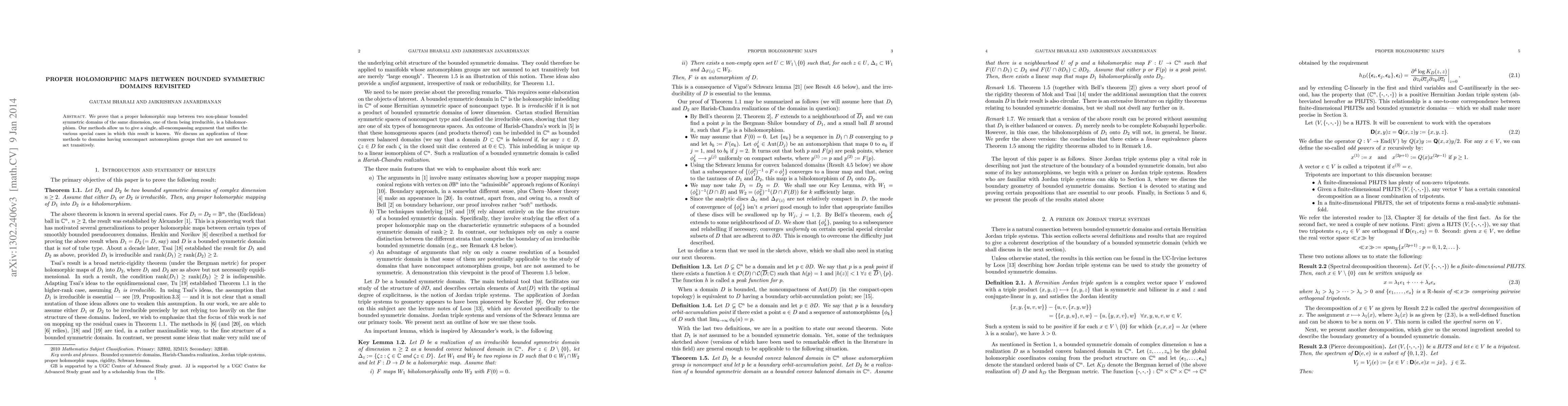 This paper proves that a proper holomorphic map between irreducible bounded symmetric domains of the same dimension is a biholomorphism. The authors unify previous results with a single, comprehensive argument and explore applications to domains with noncompact, non-transitive automorphism groups.