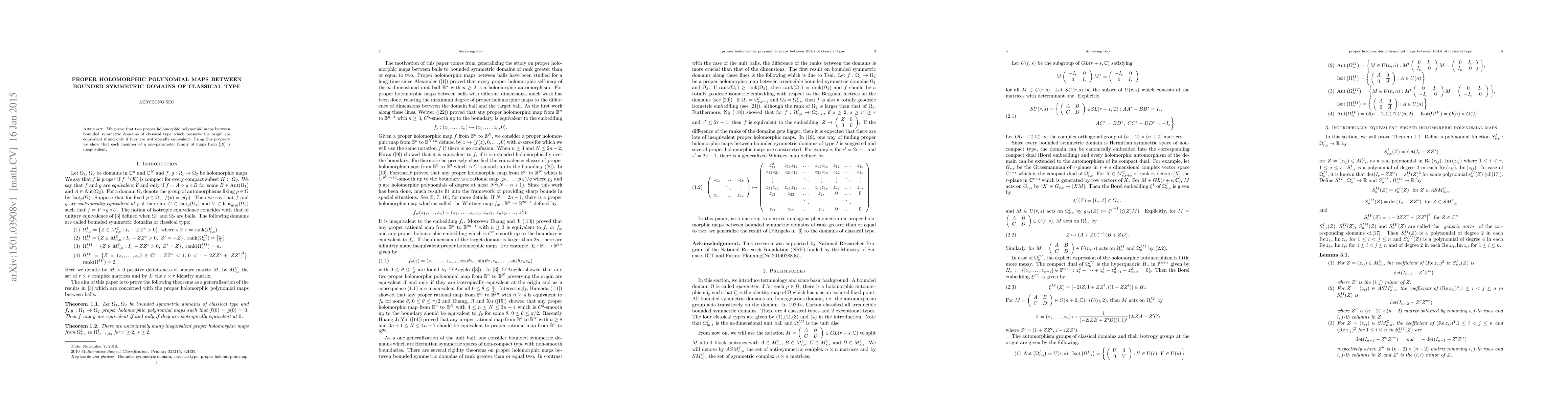 Summary: This paper proves that two proper holomorphic polynomial maps between bounded symmetric domains of classical type that preserve the origin are equivalent if and only if they are isotropically equivalent. The result establishes a connection between origin-preserving equivalence and isotropic equivalence for such maps.