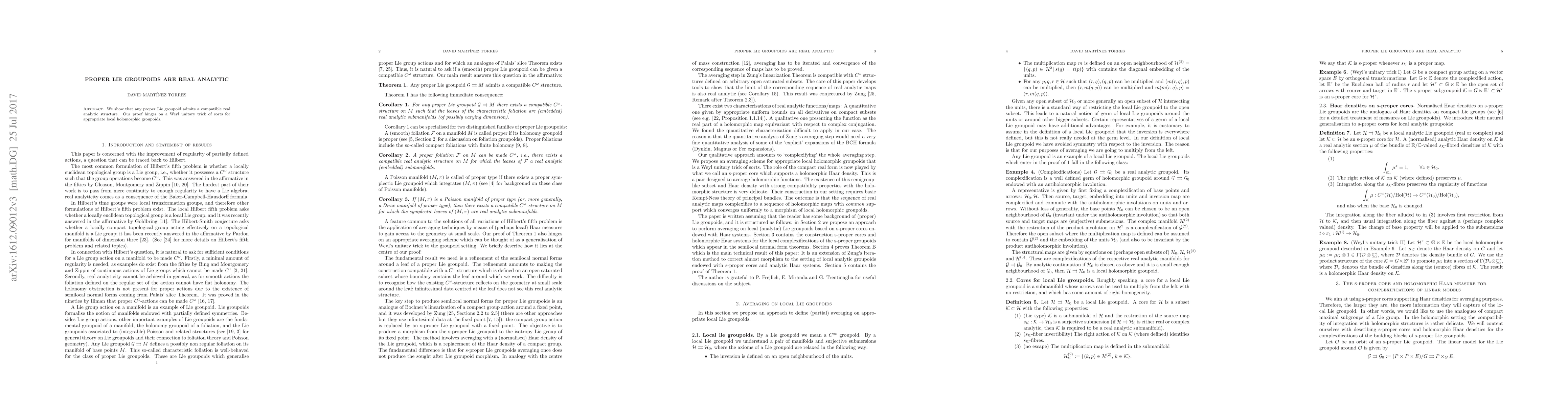 Summary: This paper demonstrates that any proper Lie groupoid can be endowed with a compatible real analytic structure, establishing the real analytic nature of proper Lie groupoids.