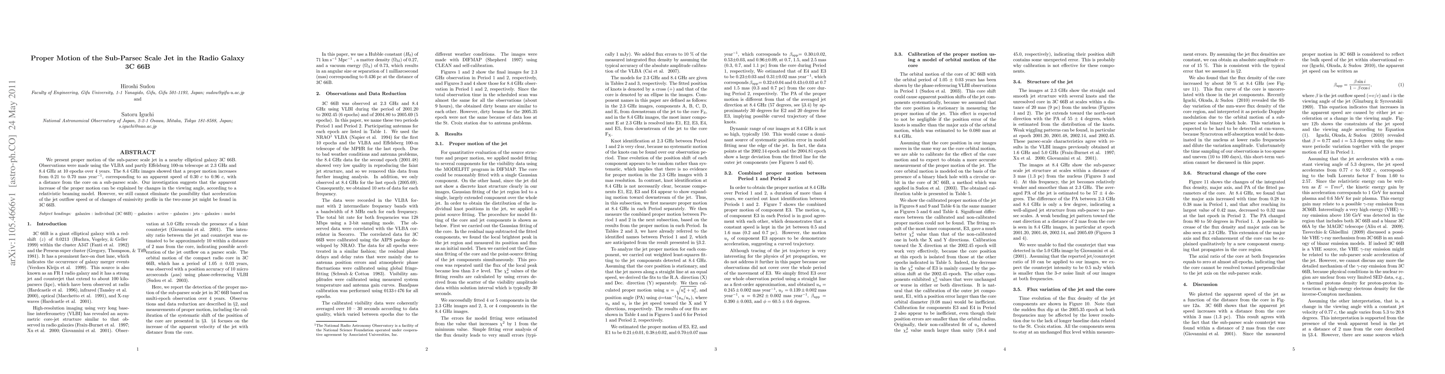 This study tracked the movement of a sub-parsec scale jet in galaxy 3C 66B over 4 years, finding an apparent speed increase from 0.30 to 0.96 c, which may be explained by changes in viewing angle according to a relativistic beaming model.
