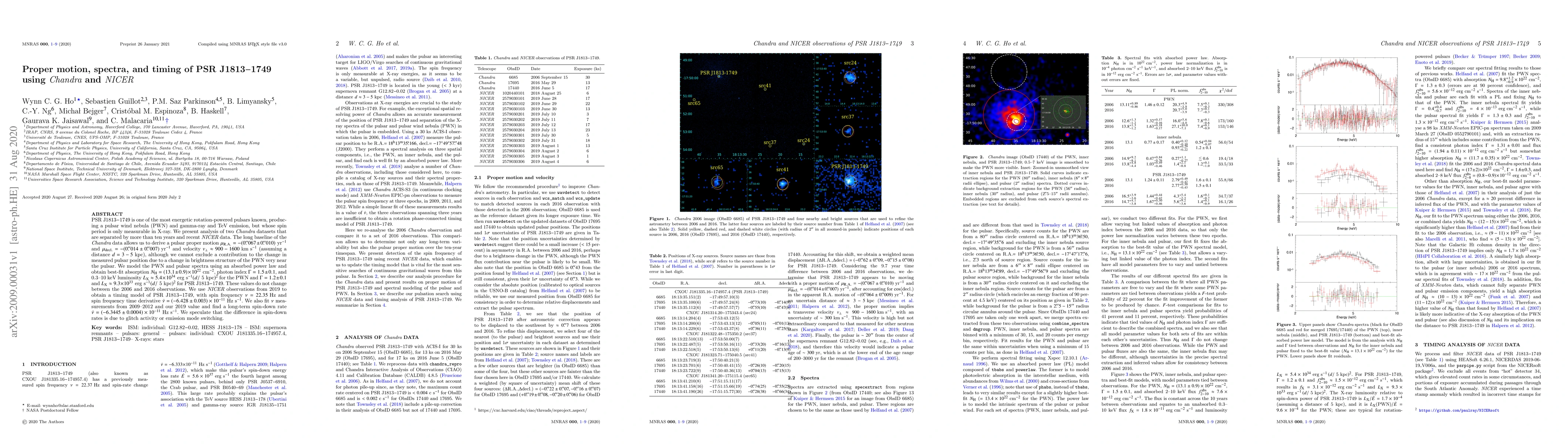 This paper analyzes the proper motion, spectra, and timing of the energetic pulsar PSR J1813-1749 using Chandra and NICER data. It derives a proper motion and velocity for the pulsar, models the pulsar wind nebula and pulsar spectra, and provides a timing model for the pulsar's spin frequency and long-term spin-down rate, noting potential causes for variations in spin-down.