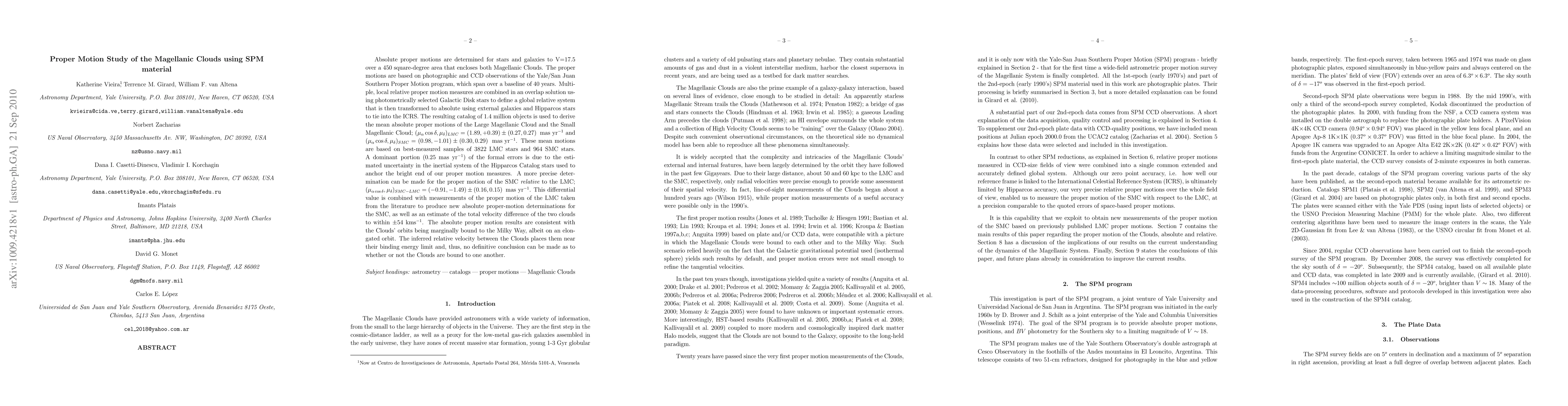 This study determines the absolute proper motions of stars in the Magellanic Clouds using a 40-year baseline from the Yale/San Juan Southern Proper Motion program. The derived mean proper motions are $(\mu_\alpha\cos\delta,\mu_\delta)_{LMC}=(1.89,+0.39)\pm (0.27,0.27)\;\;\{mas yr}^{-1}$ and $(\mu_\alpha\cos\delta,\mu_\delta)_{SMC}=(0.98,-1.01)\pm (0.30,0.29)\;\;\{mas yr}^{-1}$, with a relative proper motion of $(\mu_{\alpha\cos\delta},\mu_\delta)_{SMC-LMC} = (-0.91,-1.49) \pm (0.16,0.15)\;\;\{mas yr}^{-1}$.