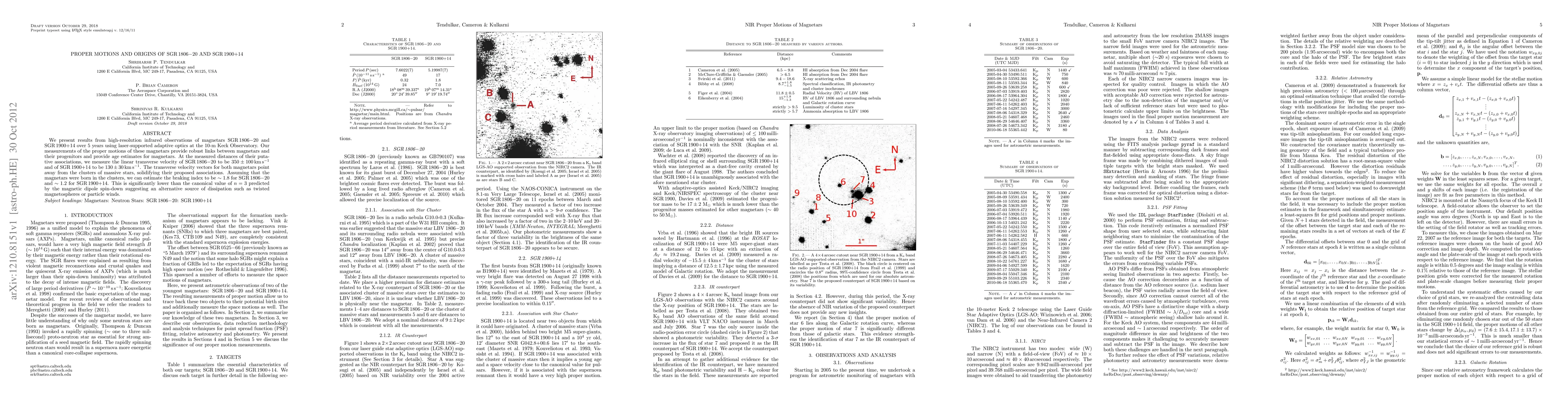 Researchers measured the proper motions of two magnetars, SGR 1806-20 and SGR 1900+14, using adaptive optics at the Keck Observatory, revealing associations with massive star clusters and suggesting alternative spin-down mechanisms.