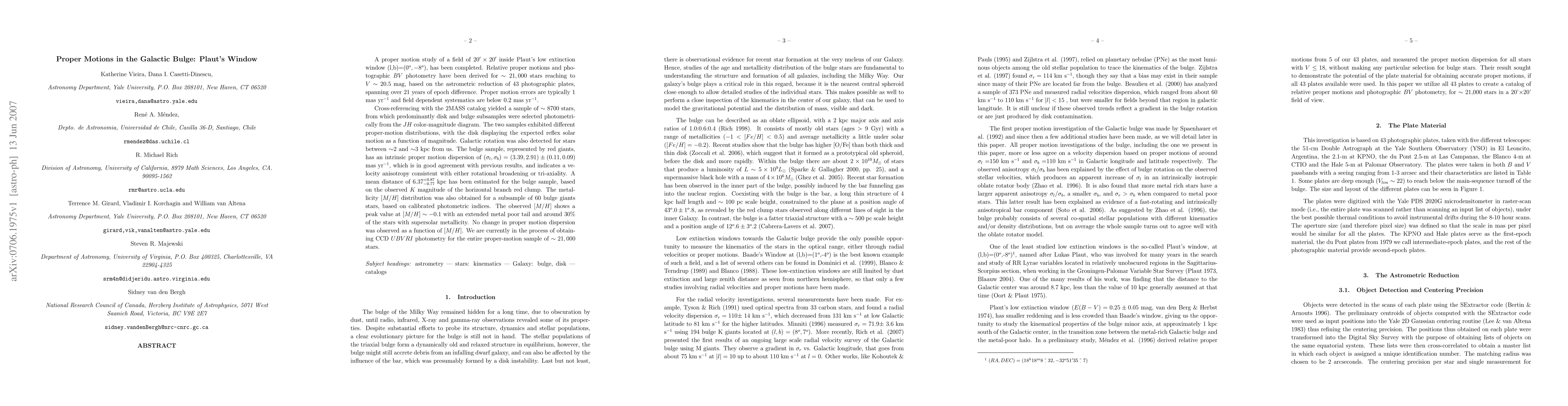This study presents proper motion data for ~21,000 stars in Plaut's Window, revealing distinct proper-motion distributions for disk and bulge subsamples. The bulge sample shows velocity anisotropy, consistent with rotational broadening or tri-axiality, and a mean distance estimate of 6.37 kpc.