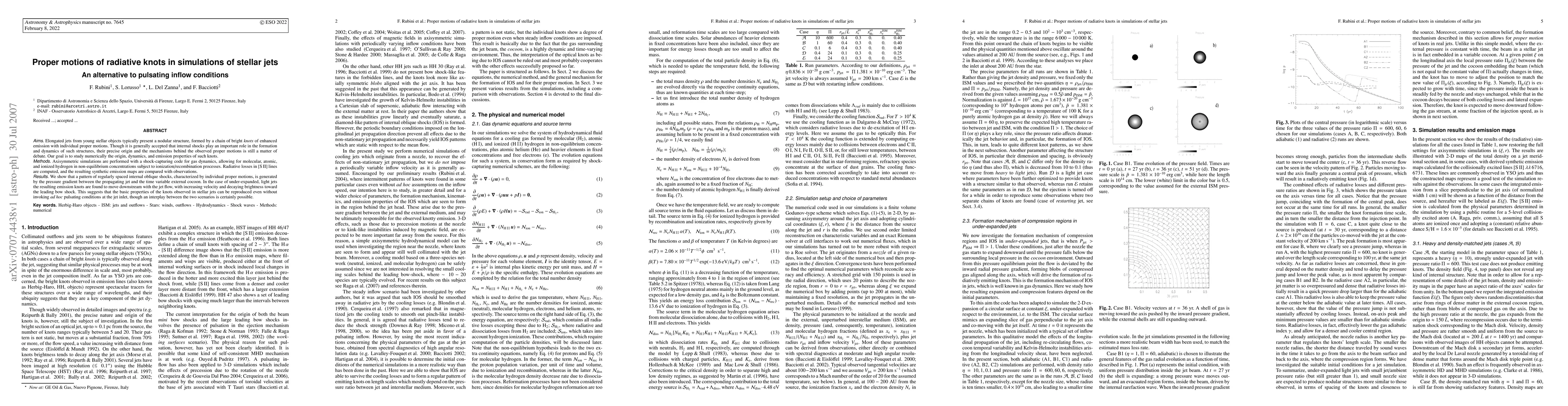 Elongated jets from young stellar objects typically present a nodular structure, formed by a chain of bright knots of enhanced emission with individual proper motions. Though it is generally accepted that internal shocks play an important role in the formation and dynamics of such structures, their precise origin and the mechanisms behind the observed proper motions is still a matter of debate. Our goal is to study numerically the origin, dynamics, and emission properties of such knots. Axisymmetric simulations are performed with a shock-capturing code for gas dynamics, allowing for molecular, atomic, and ionized hydrogen in non-equilibrium concentrations subject to ionization/recombination processes. Radiative losses in SII lines are computed, and the resulting synthetic emission maps are compared with observations. We show that a pattern of regularly spaced internal oblique shocks, characterized by individual proper motions, is generated by the pressure gradient between the propagating jet and the time variable external cocoon. In the case of under-expanded, light jets the resulting emission knots are found to move downstream with the jet flow, with increasing velocity and decaying brightness toward the leading bow shock. This suggests that the basic properties of the knots observed in stellar jets can be reproduced even without invoking ad hoc pulsating conditions at the jet inlet, though an interplay between the two scenarios is certainly possible.