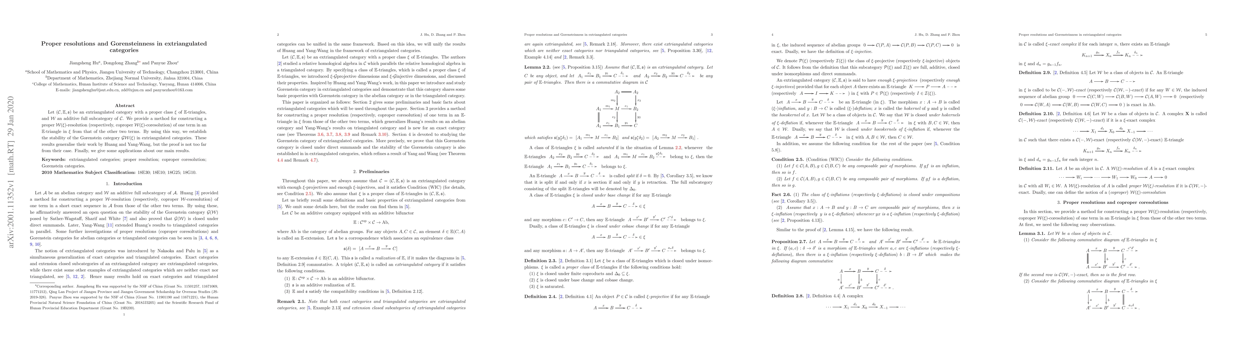 This paper constructs proper resolutions and coproper coresolutions in extriangulated categories, establishing the stability of Gorenstein categories and generalizing previous results by Huang and Yang-Wang. Applications of these findings are also discussed.