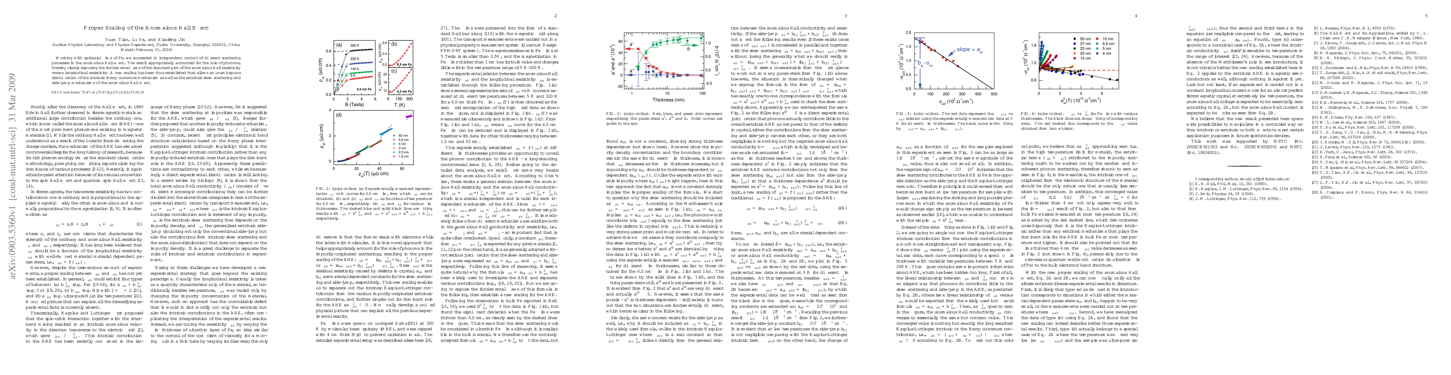 This study demonstrates independent control over scattering processes in epitaxial Fe films, revealing the role of phonons and correcting the standard anomalous Hall resistivity plot. A new scaling method is introduced, distinguishing intrinsic and extrinsic mechanisms of the anomalous Hall effect.