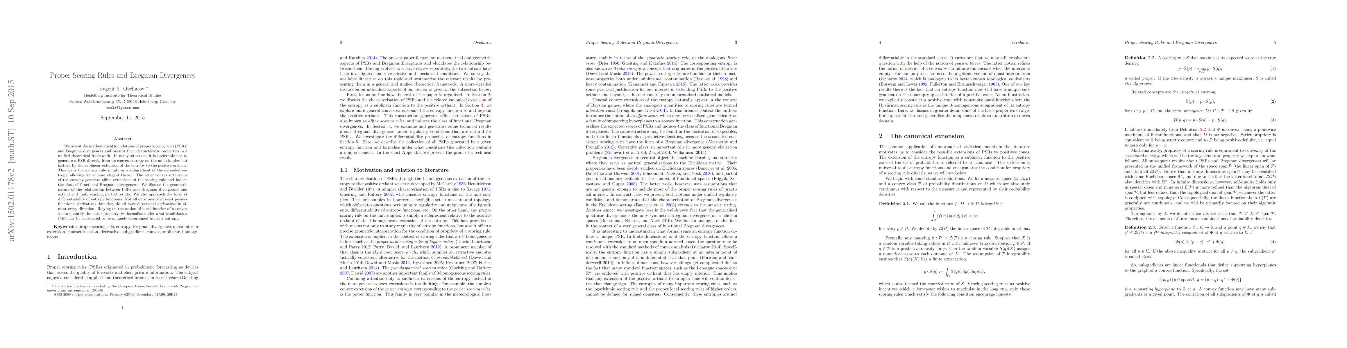 This paper unifies mathematical foundations of proper scoring rules and Bregman divergences, providing a framework for their characteristic properties and extensions. It also explores conditions under which a proper scoring rule can be uniquely determined from its entropy.