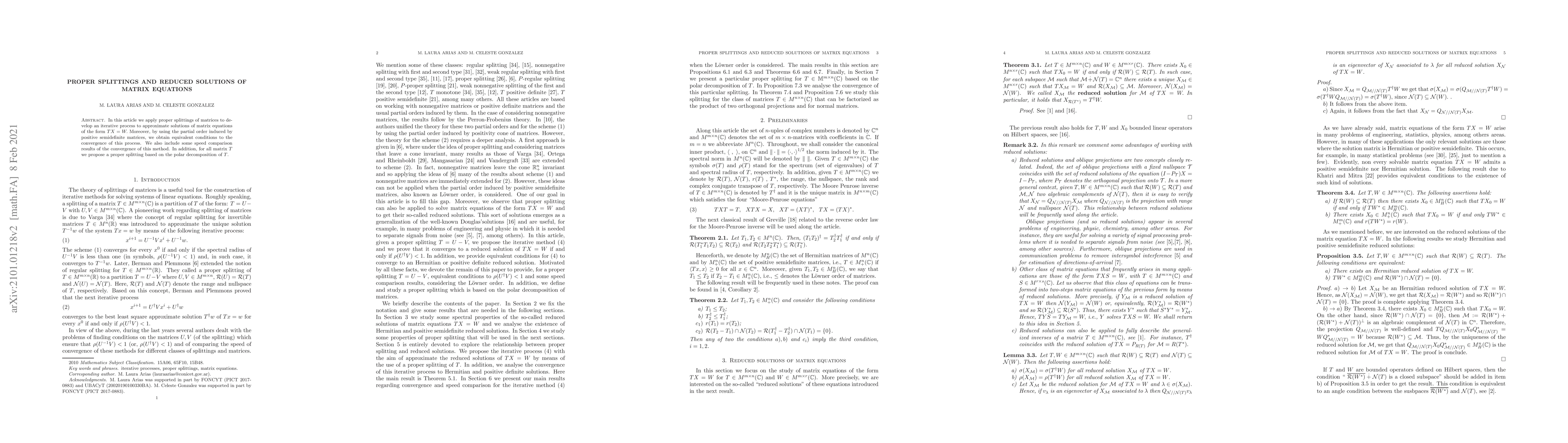 A new method for solving matrix equations is proposed, using proper splittings of matrices to approximate solutions iteratively, with equivalent convergence conditions derived from positive semidefinite matrices.