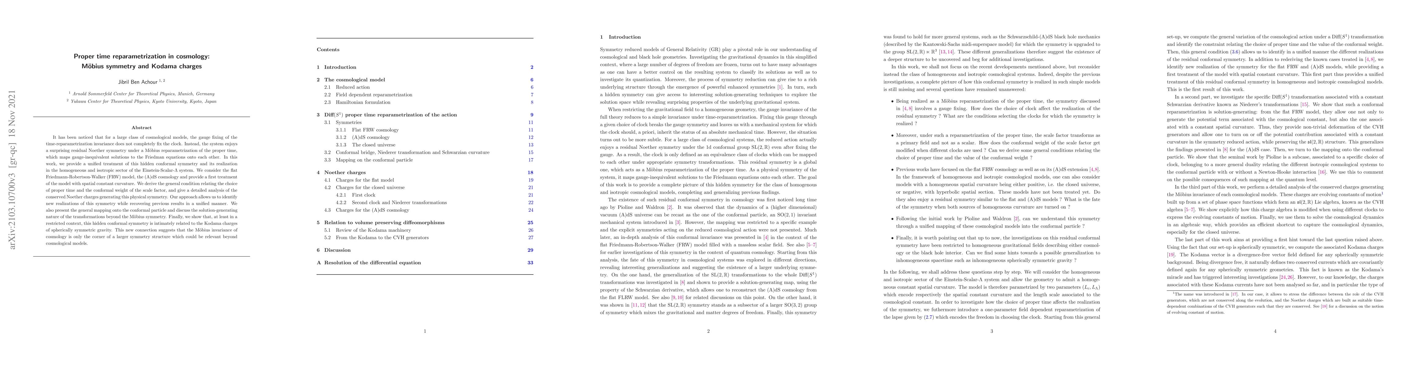 It has been noticed that for a large class of cosmological models, the gauge fixing of the time-reparametrization invariance does not completely fix the clock. Instead, the system enjoys a surprising residual Noether symmetry under a M\"{o}bius reparametrization of the proper time, which maps gauge-inequivalent solutions to the Friedman equations onto each other. In this work, we provide a unified treatment of this hidden conformal symmetry and its realization in the homogeneous and isotropic sector of the Einstein-Scalar-$\Lambda$ system. We consider the flat Friedmann-Robertson-Walker (FRW) model, the (A)dS cosmology and provide a first treatment of the model with spatial constant curvature. We derive the general condition relating the choice of proper time and the conformal weight of the scale factor, and give a detailed analysis of the conserved Noether charges generating this physical symmetry. Our approach allows us to identify new realizations of this symmetry while recovering previous results in a unified manner. We also present the general mapping onto the conformal particle and discuss the solution-generating nature of the transformations beyond the M\"{o}bius symmetry. Finally, we show that, at least in a restricted context, this hidden conformal symmetry is intimately related to the Kodama charges of spherically symmetric gravity. This new connection suggests that the M\"{o}bius invariance of cosmology is only the corner of a larger symmetry structure which could be relevant beyond cosmological models.
