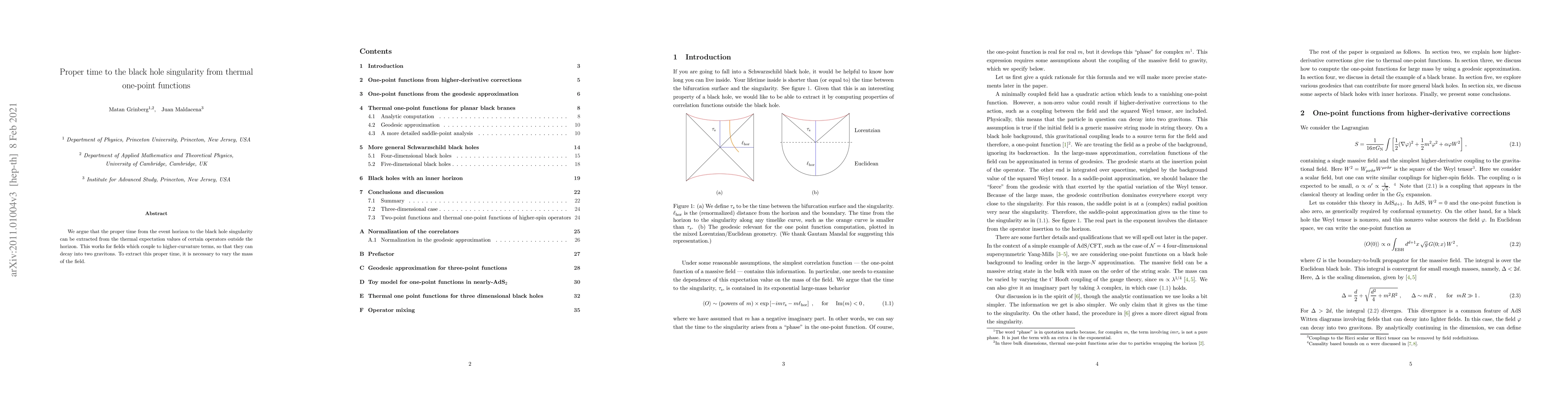 We argue that the proper time from the horizon to the black hole singularity can be extracted from the thermal expectation values of certain operators outside the horizon. This works for fields which couple to higher curvature terms, so that they can decay into two gravitons. To extract this time, it is necessary to vary the mass of the field.