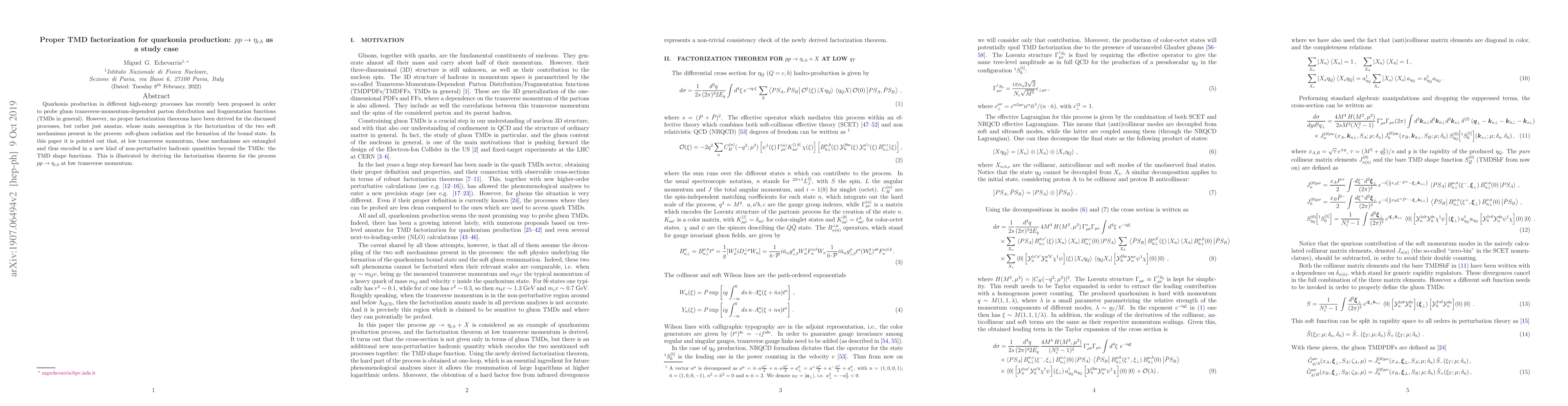 Quarkonia production in different high-energy processes has recently been proposed in order to probe gluon transverse-momentum-dependent parton distribution and fragmentation functions (TMDs in general). However, no proper factorization theorems have been derived for the discussed processes, but rather just ansatzs, whose main assumption is the factorization of the two soft mechanisms present in the process: soft-gluon radiation and the formation of the bound state. In this paper it is pointed out that, at low transverse momentum, these mechanisms are entangled and thus encoded in a new kind of non-perturbative hadronic quantities beyond the TMDs: the TMD shape functions. This is illustrated by deriving the factorization theorem for the process $pp\to \eta_{c,b}$ at low transverse momentum.