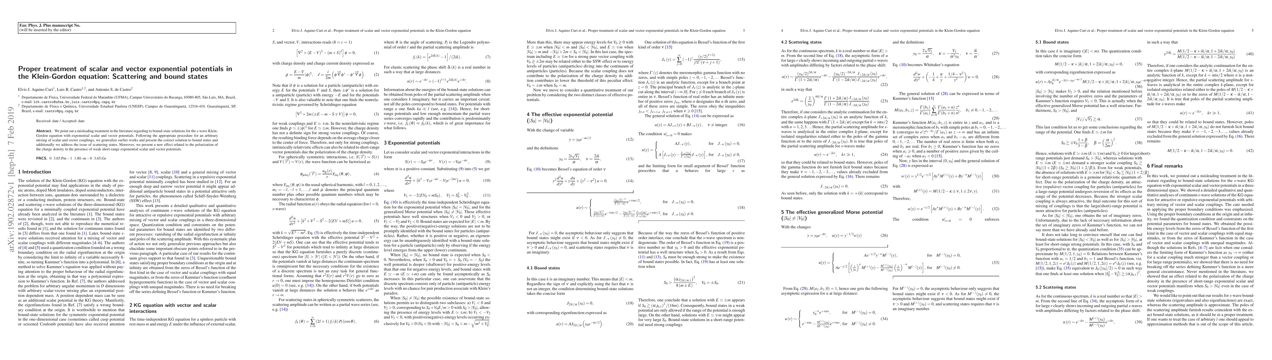 This paper corrects the treatment of bound-state solutions in the Klein-Gordon equation with exponential scalar and vector potentials, providing accurate solutions and addressing scattering states. It also reveals a new effect concerning the polarization of charge density under weak short-range potentials.